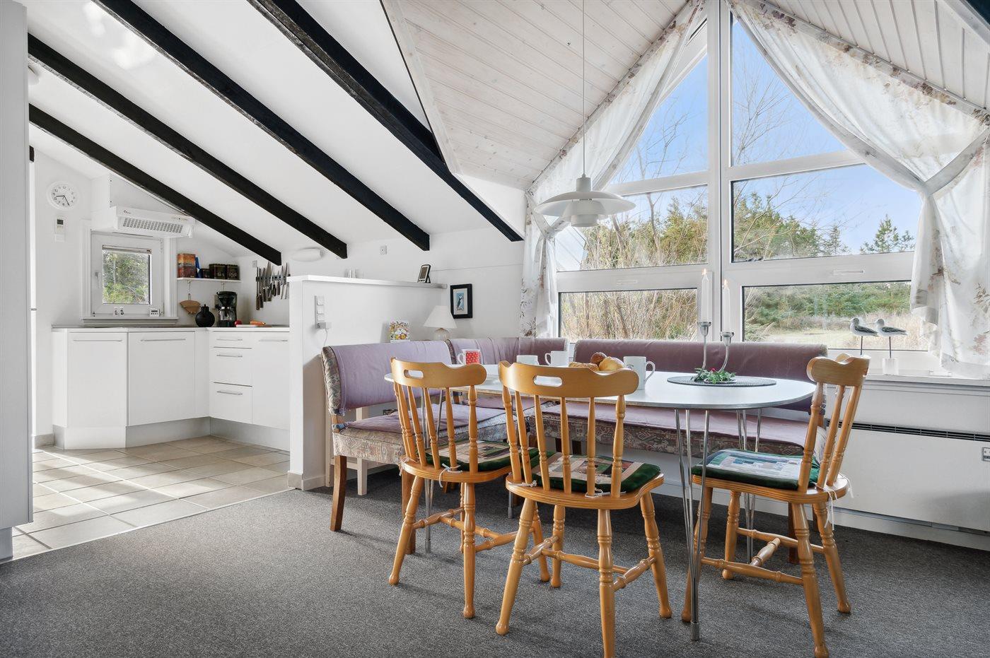 På en lyngbevokset naturgrund i fredelige omgivelser finder I dette pæne sommerhus i træ fra 1971 (løbende renoveret). Til huset hører en åben terrasse med havemøbler. Hyggelig indretning med pæne møbler og store vinduer. Opvarmet klinkegulv i køkken og bad. Kombineret spise- og opholdsstue med brændeovn, TV og Chromecast. Der er installeret trådløs internetforbindelse. Køkkenet er bl.a. udstyret med opvaskemaskine og mikrobølgeovn. Badeværelse med bruseniche og vaskemaskine. Husets sovepladser fordeler sig på 1 værelse med dobbeltseng og 2 værelser med hver 2 enkeltsenge. Høj barnestol forefindes. Til de mindste feriegæster findes der sandkasse og gynge på grunden. Fryser i redskabsrum. Et skønt og velholdt sommerhus.