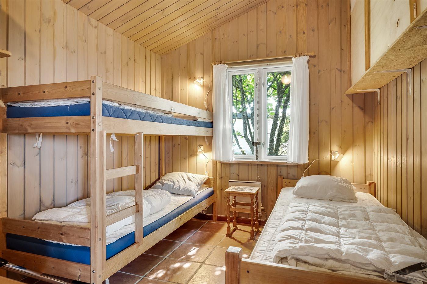 Der er i alt 2 soveværelser. Sovepladserne fordeler sig på: 2 sovepladser i dobbeltseng. 1 soveplads i enkeltseng. 2 sovepladser i køjeseng.