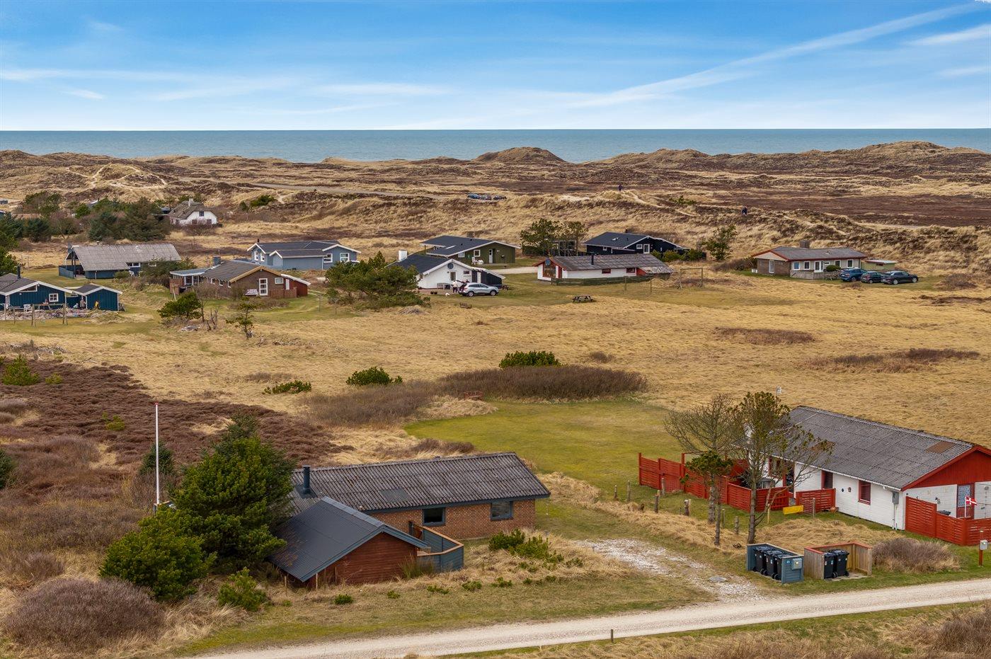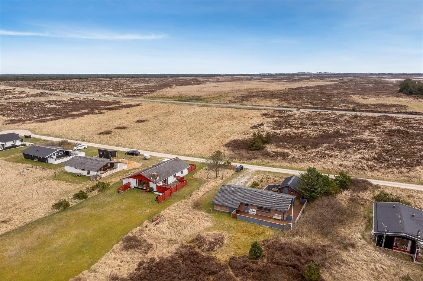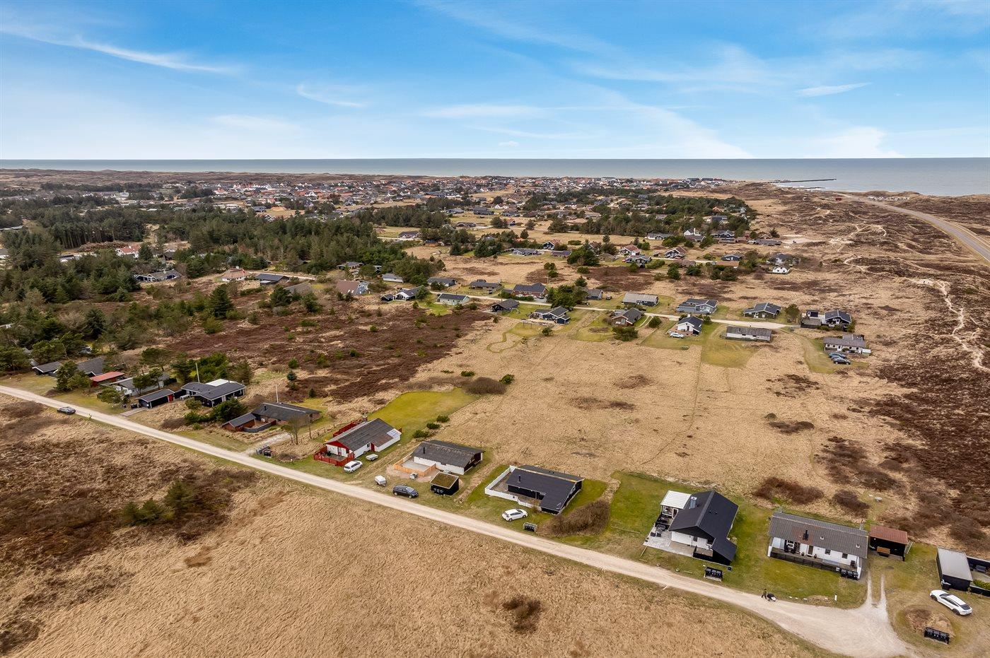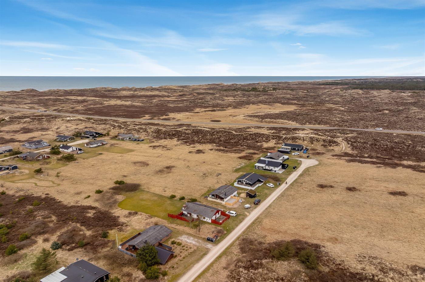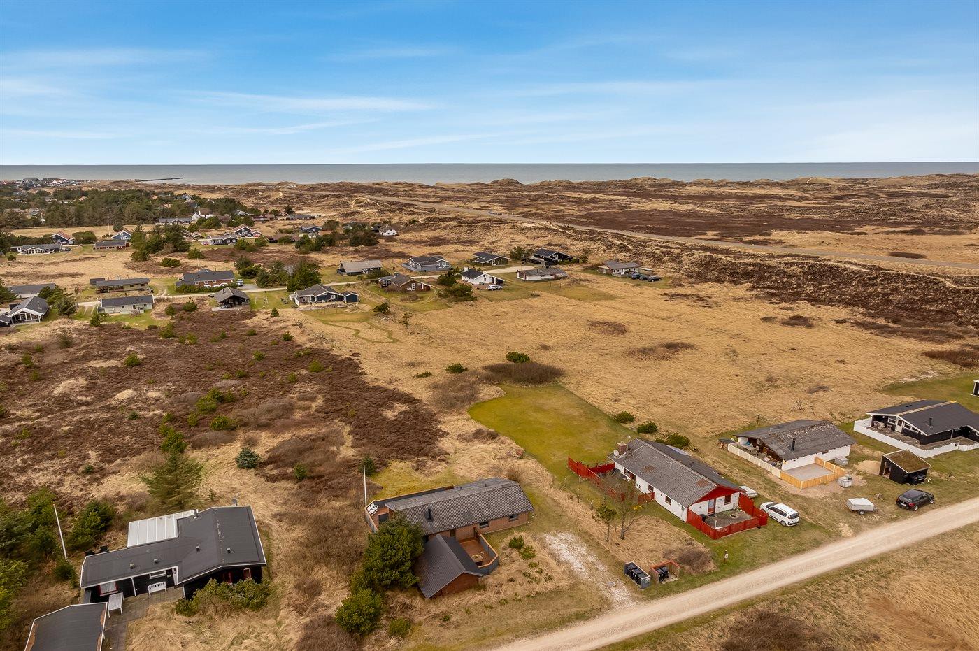 Ferieboligen er beliggende på en 1970 m² stor klitgrund. Der er 900 m til havet. Nærmeste forretning er beliggende i en afstand af 1500 m. Til ferieboligen hører åbent terrasseareal. Desuden er der overdækket terrasse. Der er redskabsrum. Grill til rådighed. Parkering ved ferieboligen.