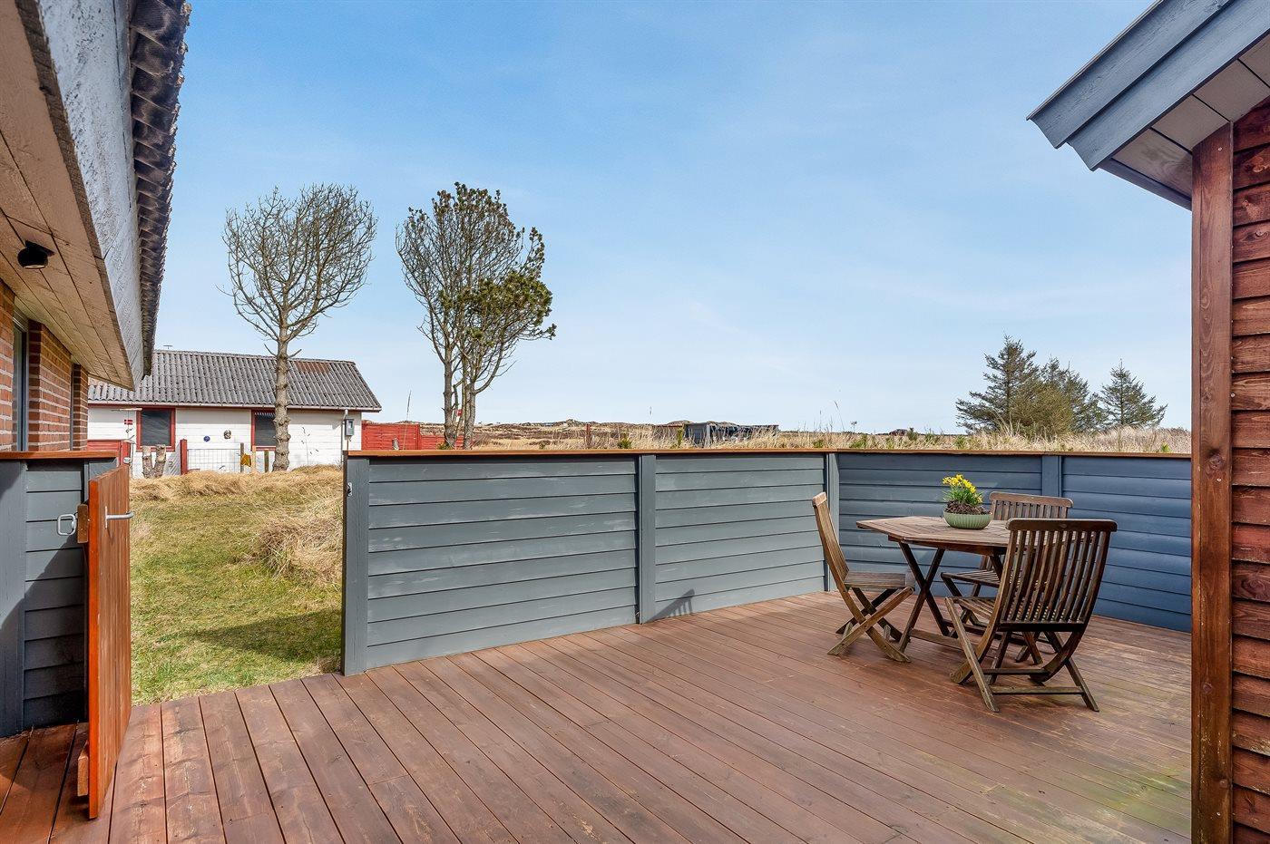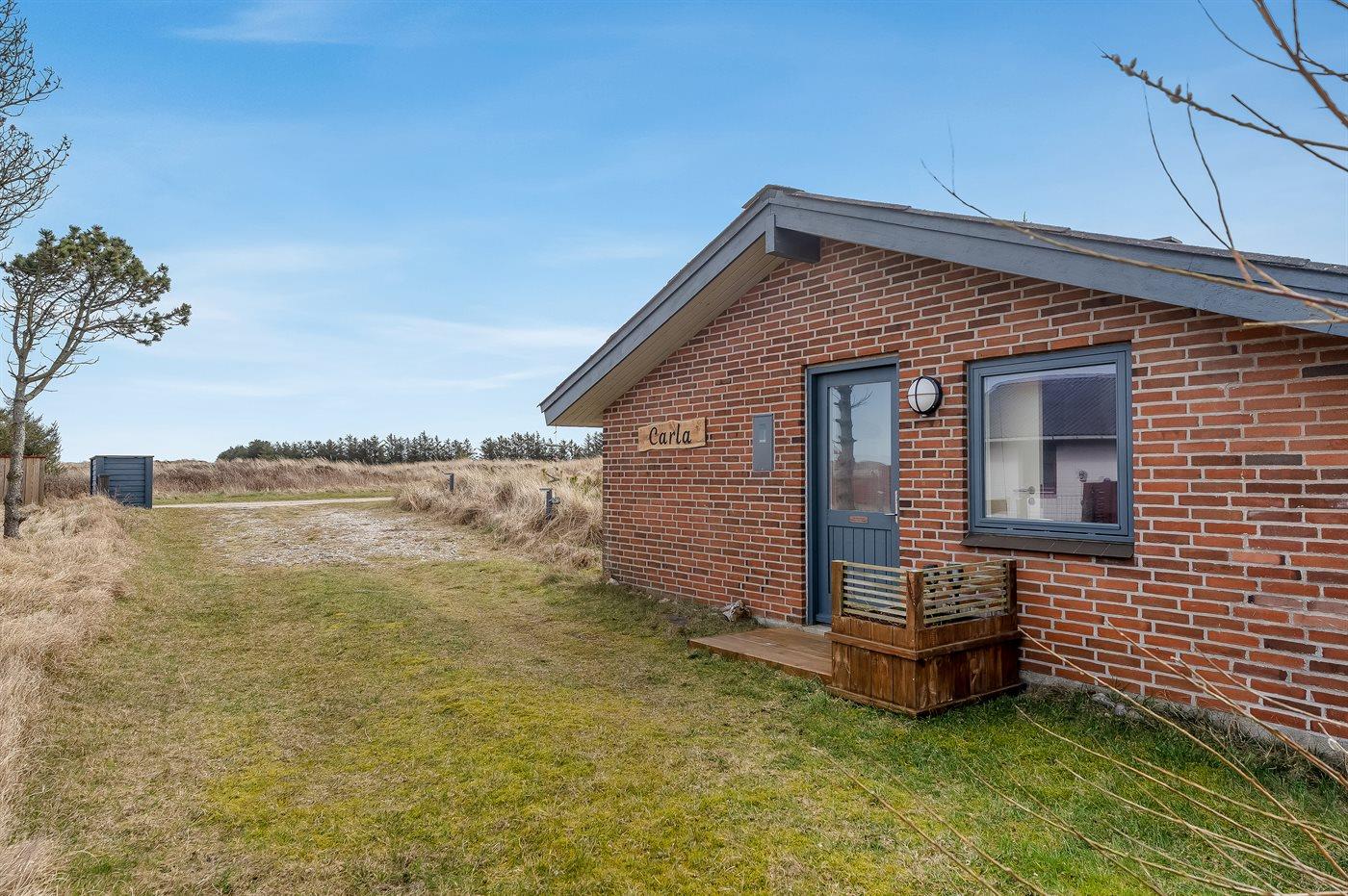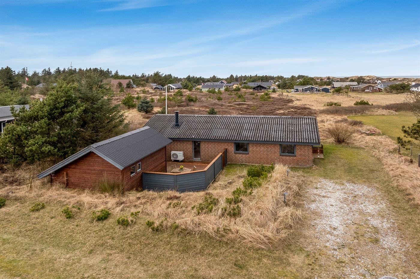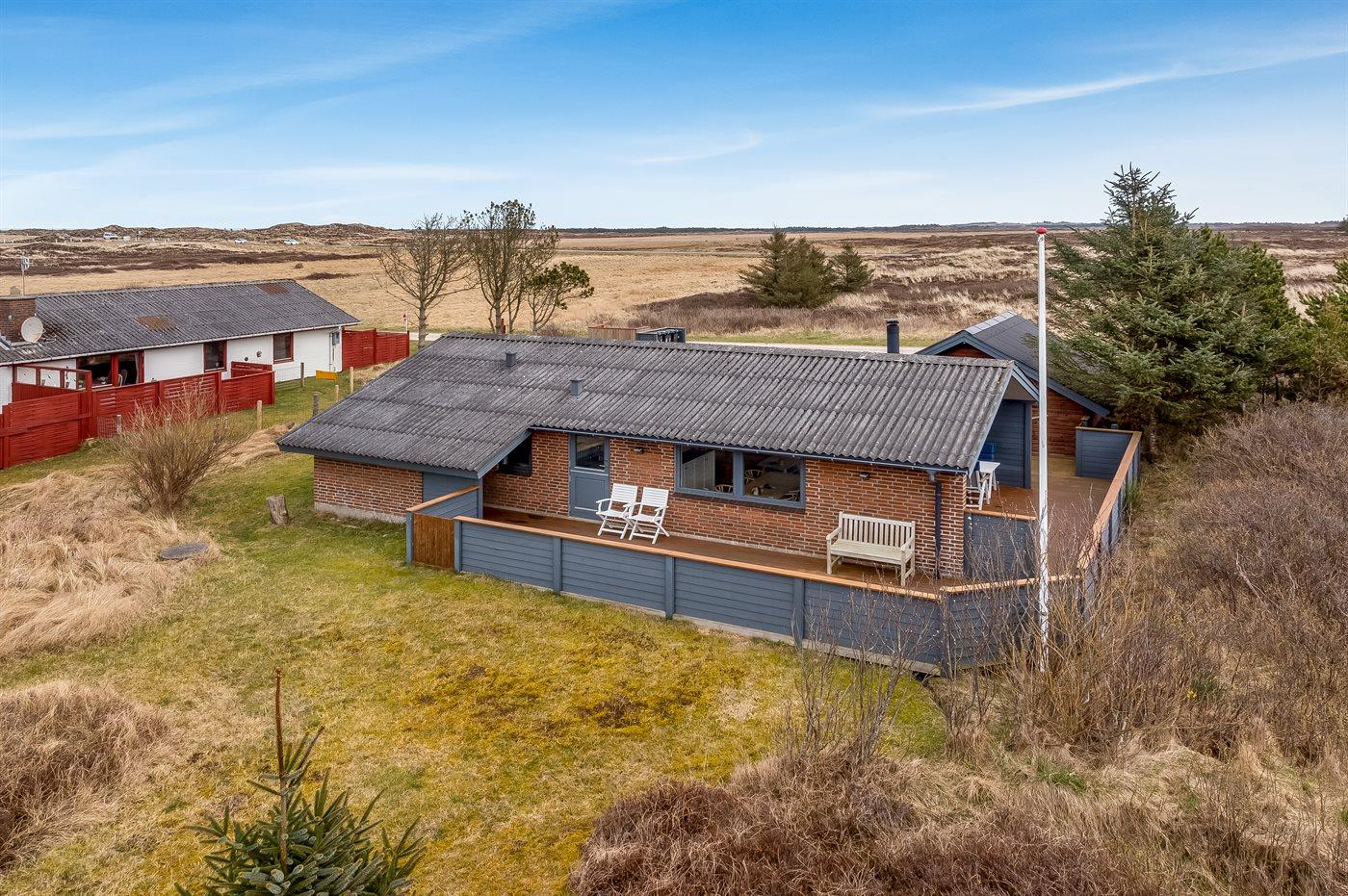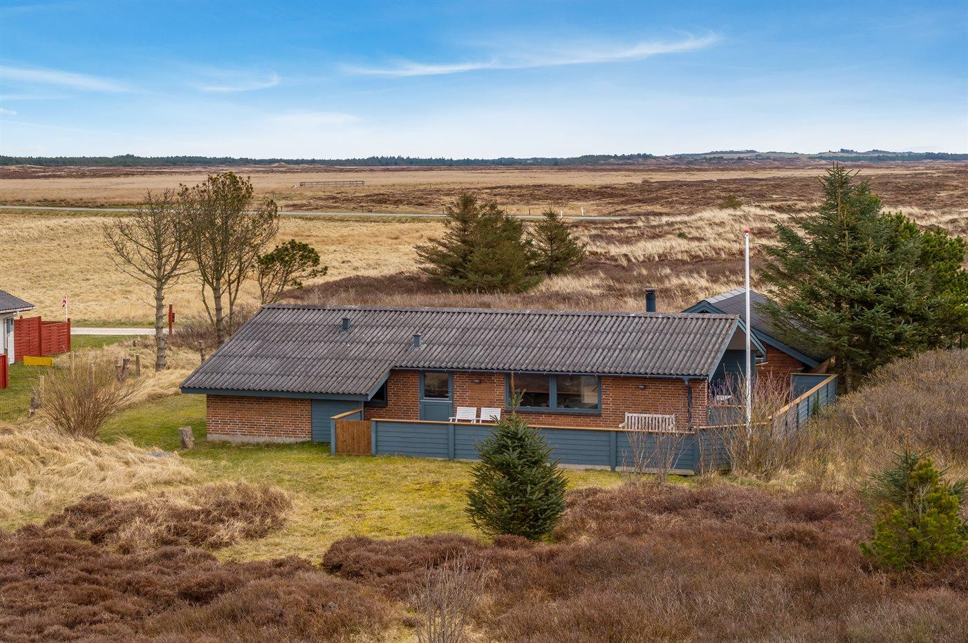 Ferieboligen er beliggende på en 1970 m² stor klitgrund. Der er 900 m til havet. Nærmeste forretning er beliggende i en afstand af 1500 m. Til ferieboligen hører åbent terrasseareal. Desuden er der overdækket terrasse. Der er redskabsrum. Grill til rådighed. Parkering ved ferieboligen.