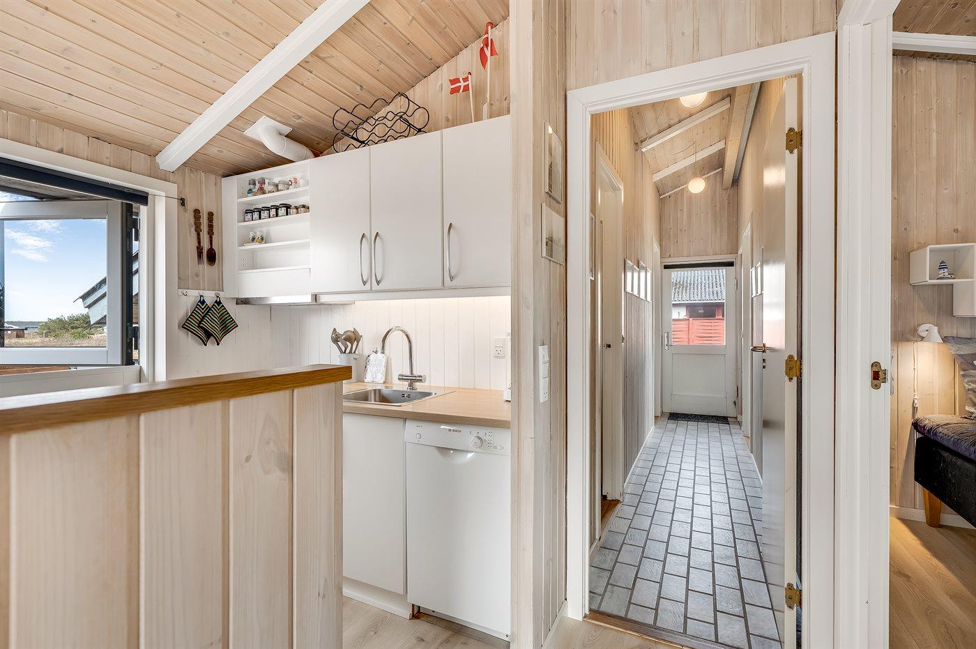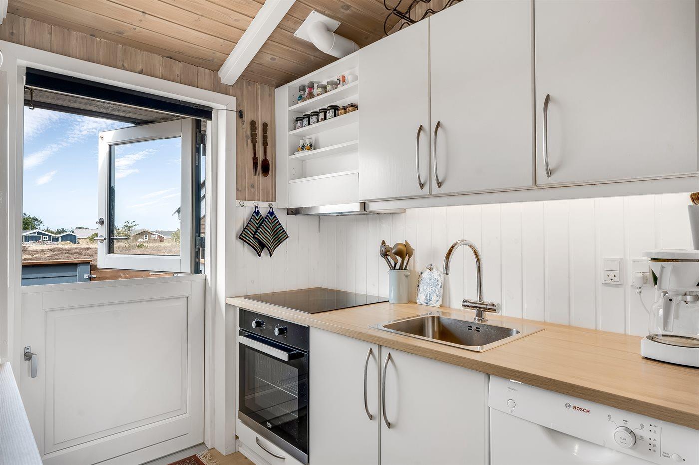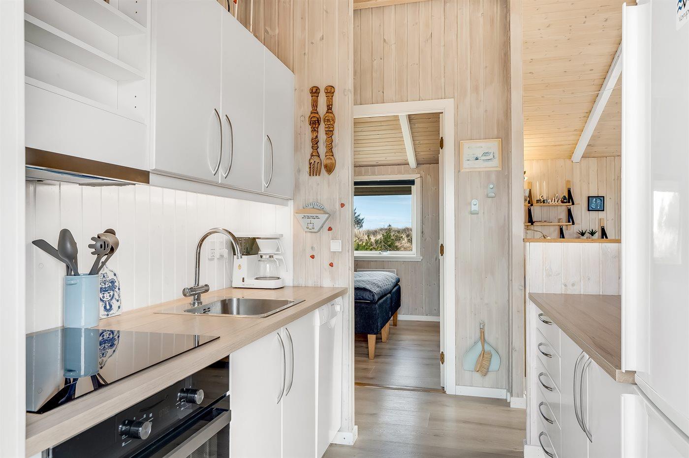 Køkkenet er udstyret med 1 køleskab. Der er 4 induktionskogeplader, varmluftovn samt opvaskemaskine.