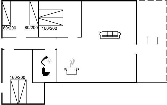 Der er i alt 3 soveværelser. Sovepladserne fordeler sig på: 4 sovepladser i dobbeltsenge. 2 sovepladser i enkeltsenge.