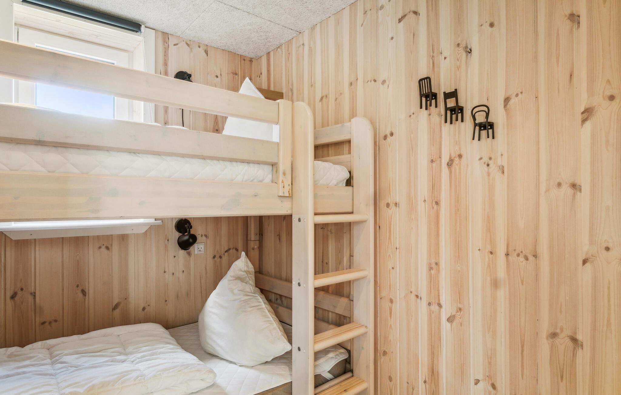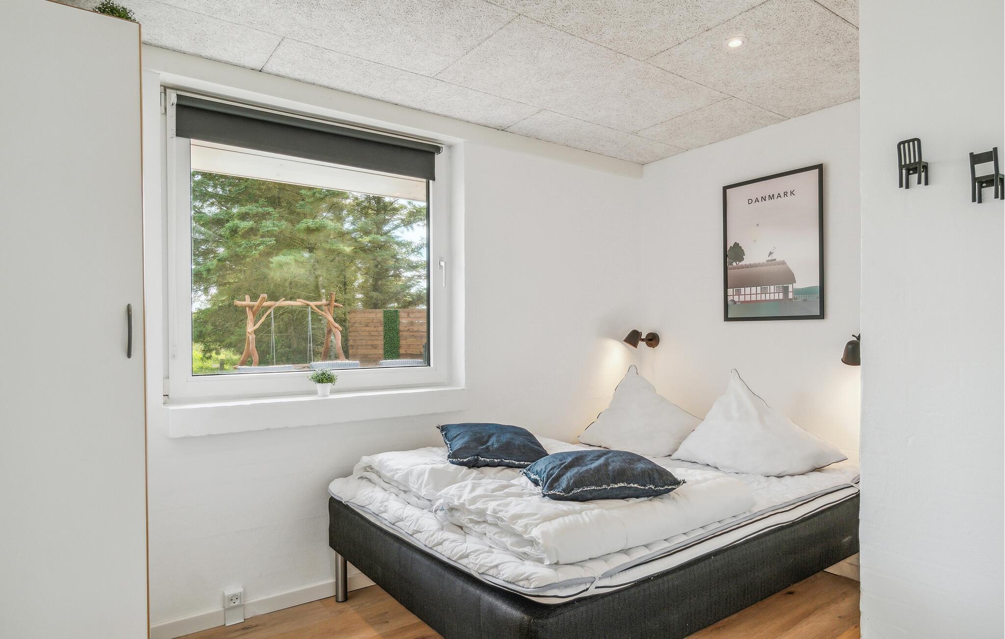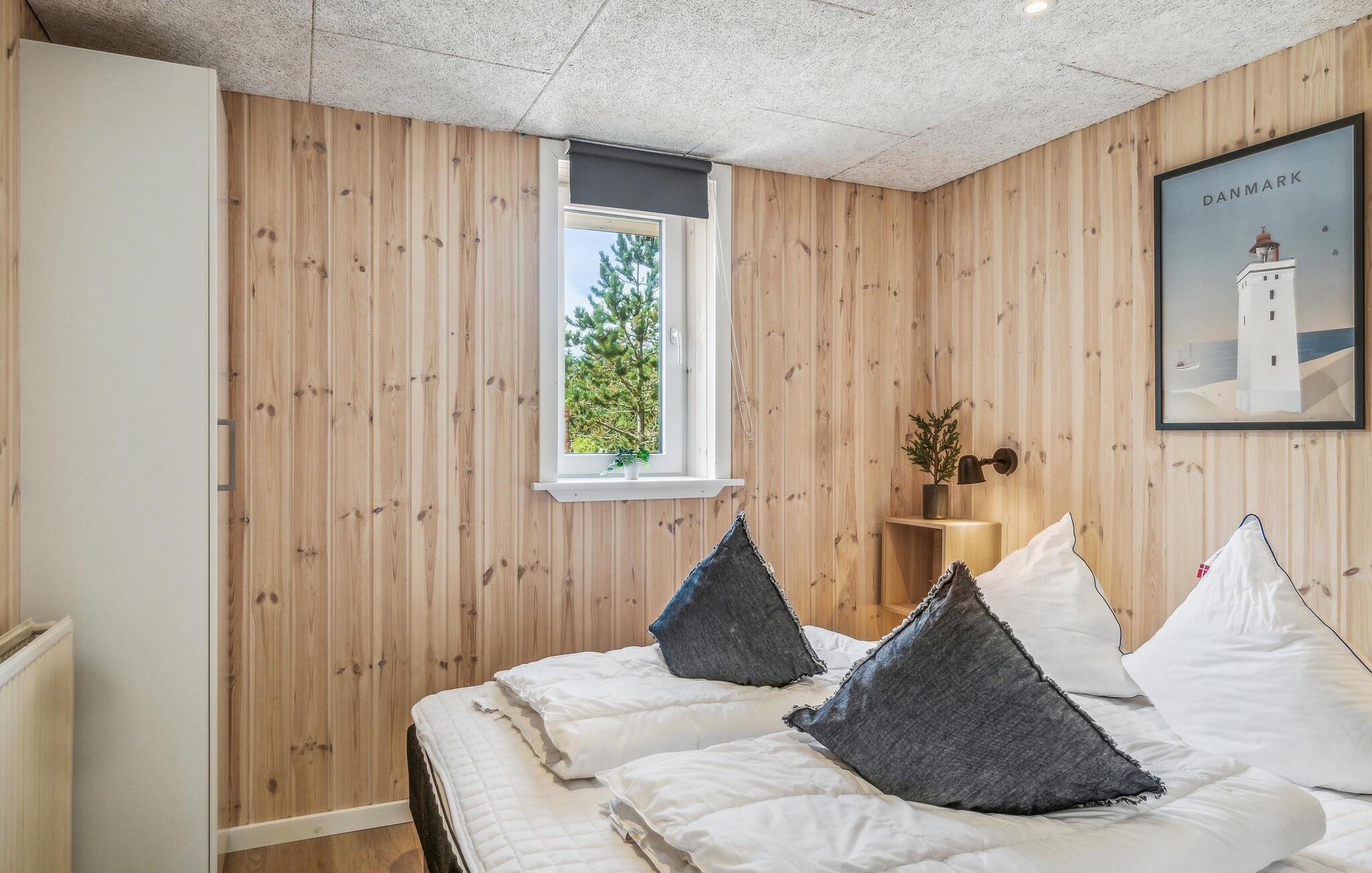 De seks soveværelser har plads til op mod 12 personer, og to kæledyr er også velkomne. Huset er lyst og moderne og tilbyder alt, hvad I behøver til en afslappende ferie med fuld komfort. På kølige aftener kan I sætte jer til rette i stuen og læne jer tilbage til lyden af knitrende flammer i brændeovnen. Det er også ren luksus med en tur i sauna efter en af en dukkert eller en forblæst gåtur ved vandet. I kan vælge mellem en almindelig eller infrarød sauna.