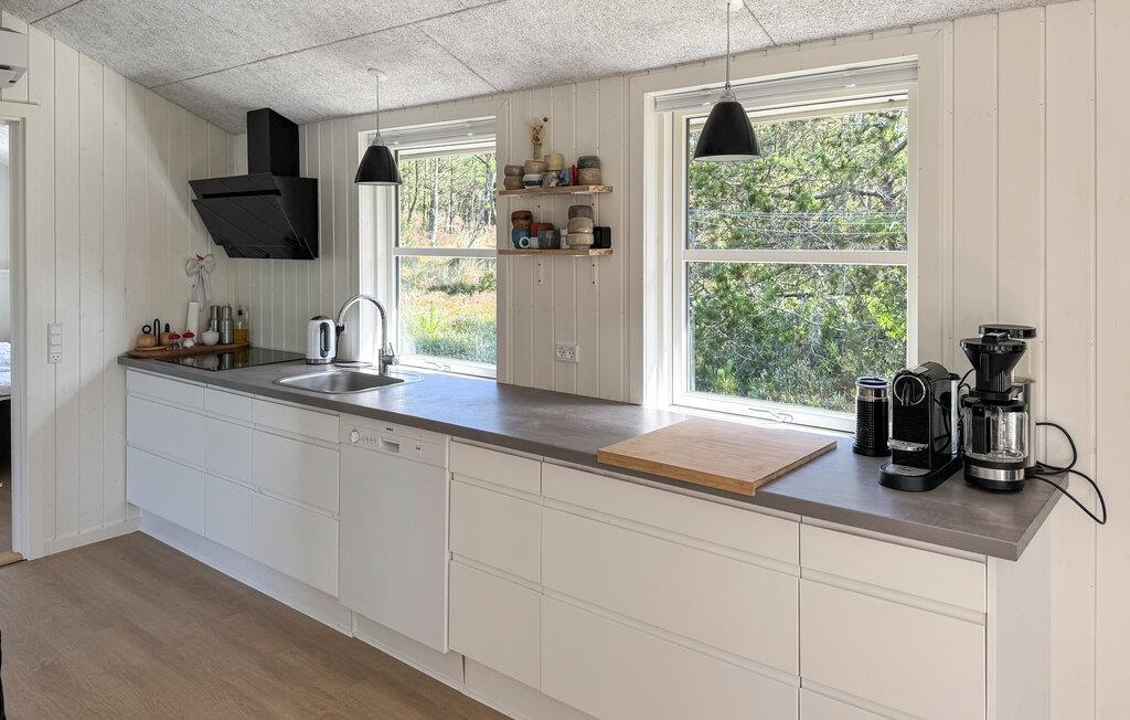 Rejs til Vorupør Strand, hvor I tæt på Vesterhavet finder dette indbydende træhus, der er det ideelle valg for jer, der gerne vil nyde en ferie med fred, ro og masser af skøn natur. Huset fremtræder flot og moderne med et åbent boligkoncept og en brændeovn, der på de kølige dage skaber den helt rigtige stemning til en brætspilsaften eller en god film i sofaen.