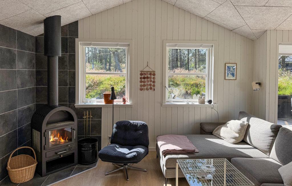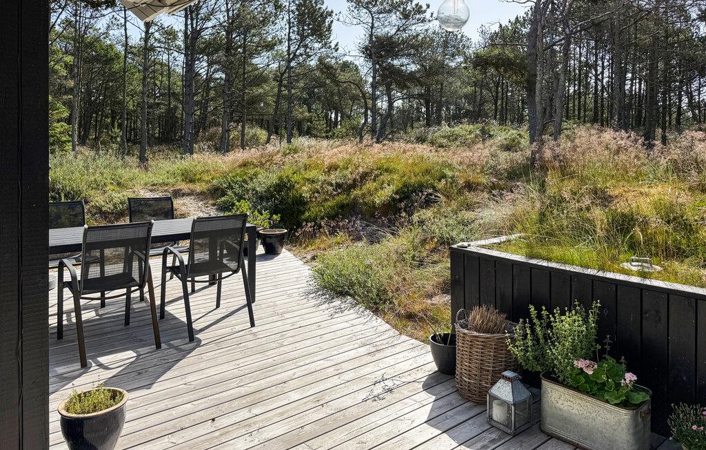 Moderne træhus i Nationalpark Thy nær Vesterhavet med brændeovn og to terrasser, perfekt til en fredelig ferie i naturskønne omgivelser.