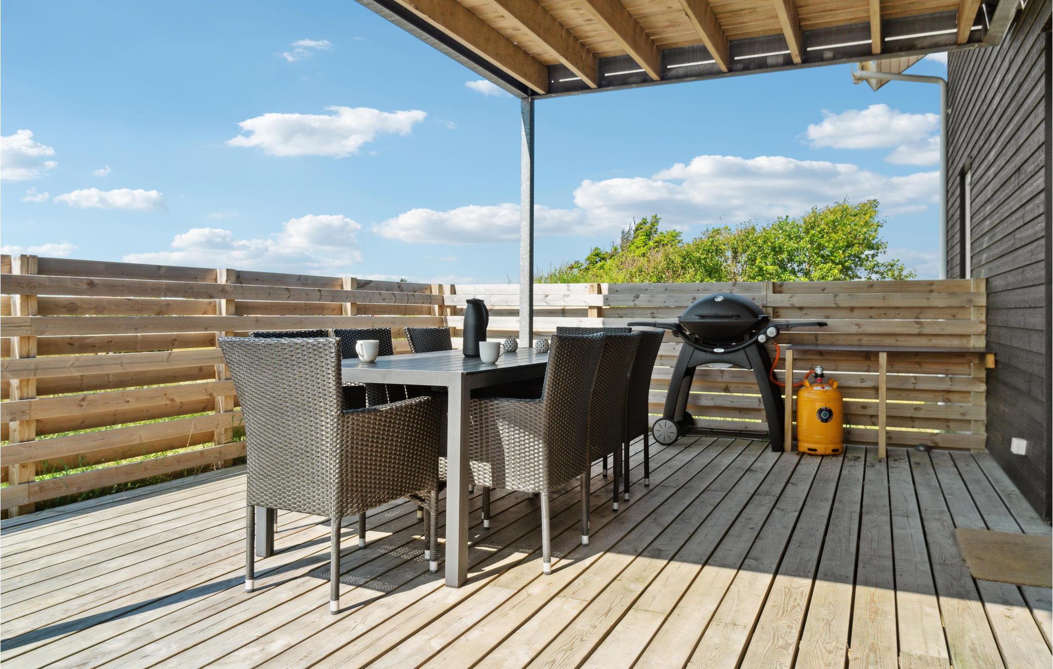 Nyd dagens første kop kaffe på altanen og tilbring dejlige stunder udenfor på den delvist overdækkede terrasse. Komfortable liggestole inviterer jer til at solbade, og I kan tilberede lækker mad på grillen.