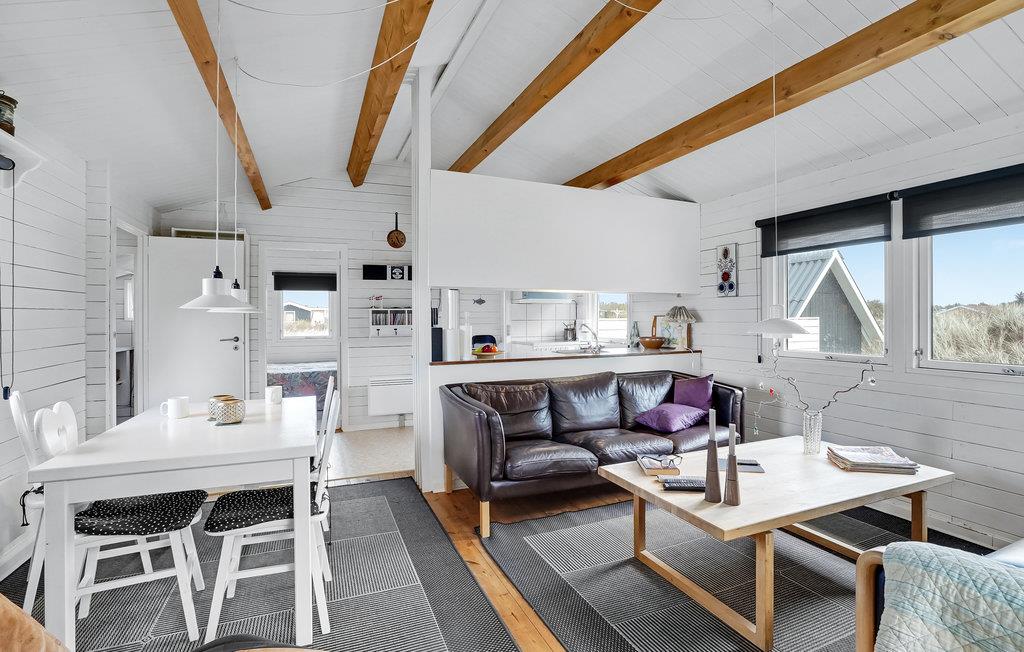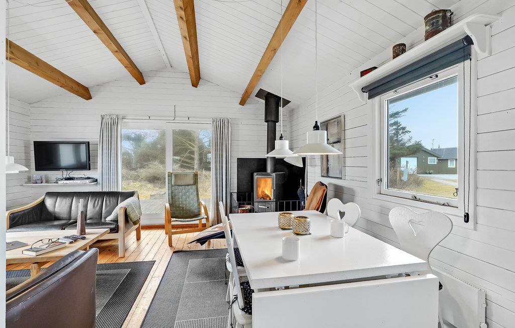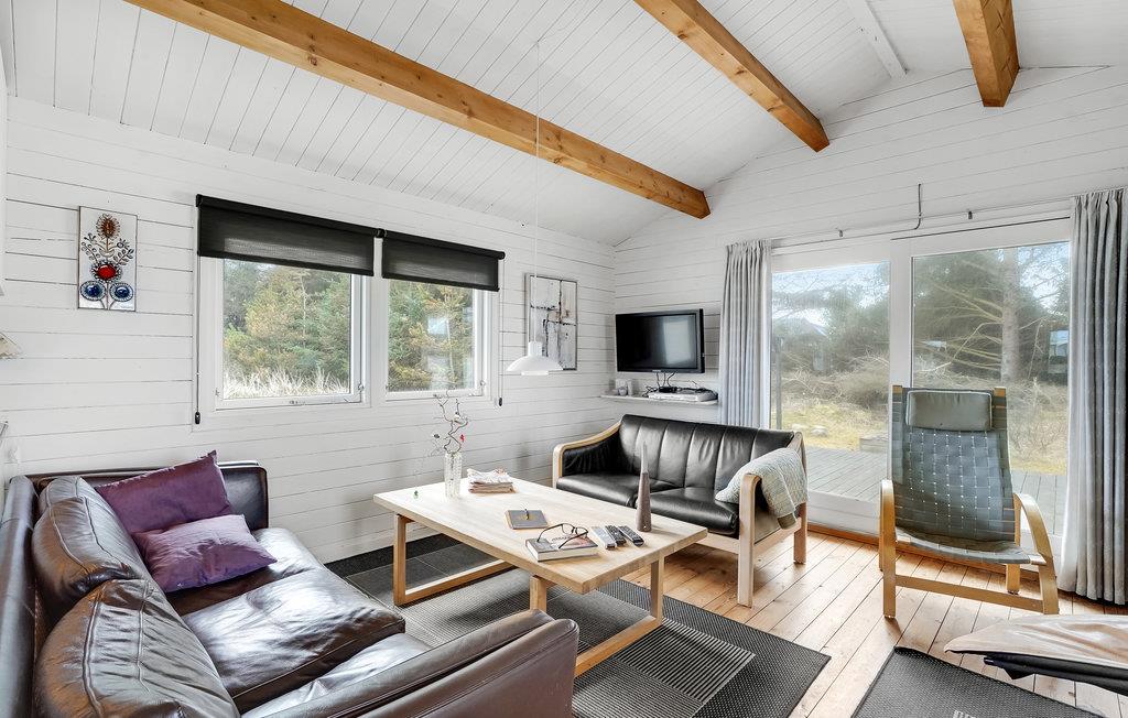 Jeres sommerhus ligger på sin egen lille grund med god plads til leg og aktivitet. I kan sole jer og grille på den store træterrasse. Indvendigt er huset meget lyst og smagfuldt indrettet. De synlige træbjælker i loftet skaber en rigtig hyggelig stemning i kombination med de hvidmalede vægge og lofter. Her kan I hvile ud mellem udflugter med kort og brætspil, lækre feriemåltider og hyggelige filmaftener. Der er også brændeovn til de køligere årstider.