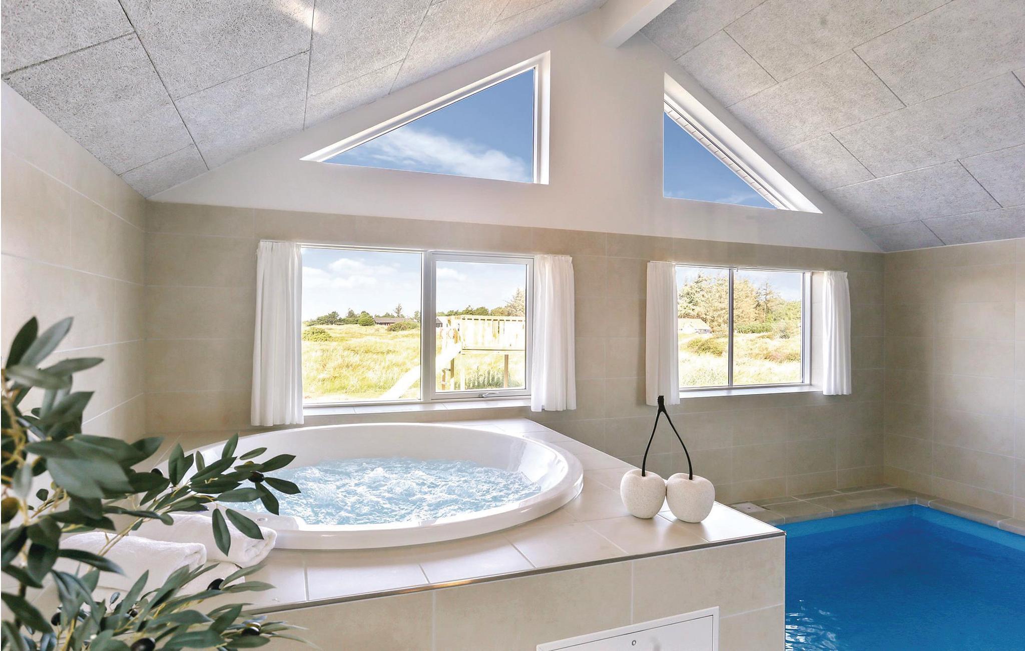 Stort, moderne sommerhus ved Vorupør med pool, sauna, legeplads og fantastisk udsigt over den jyske hede.
