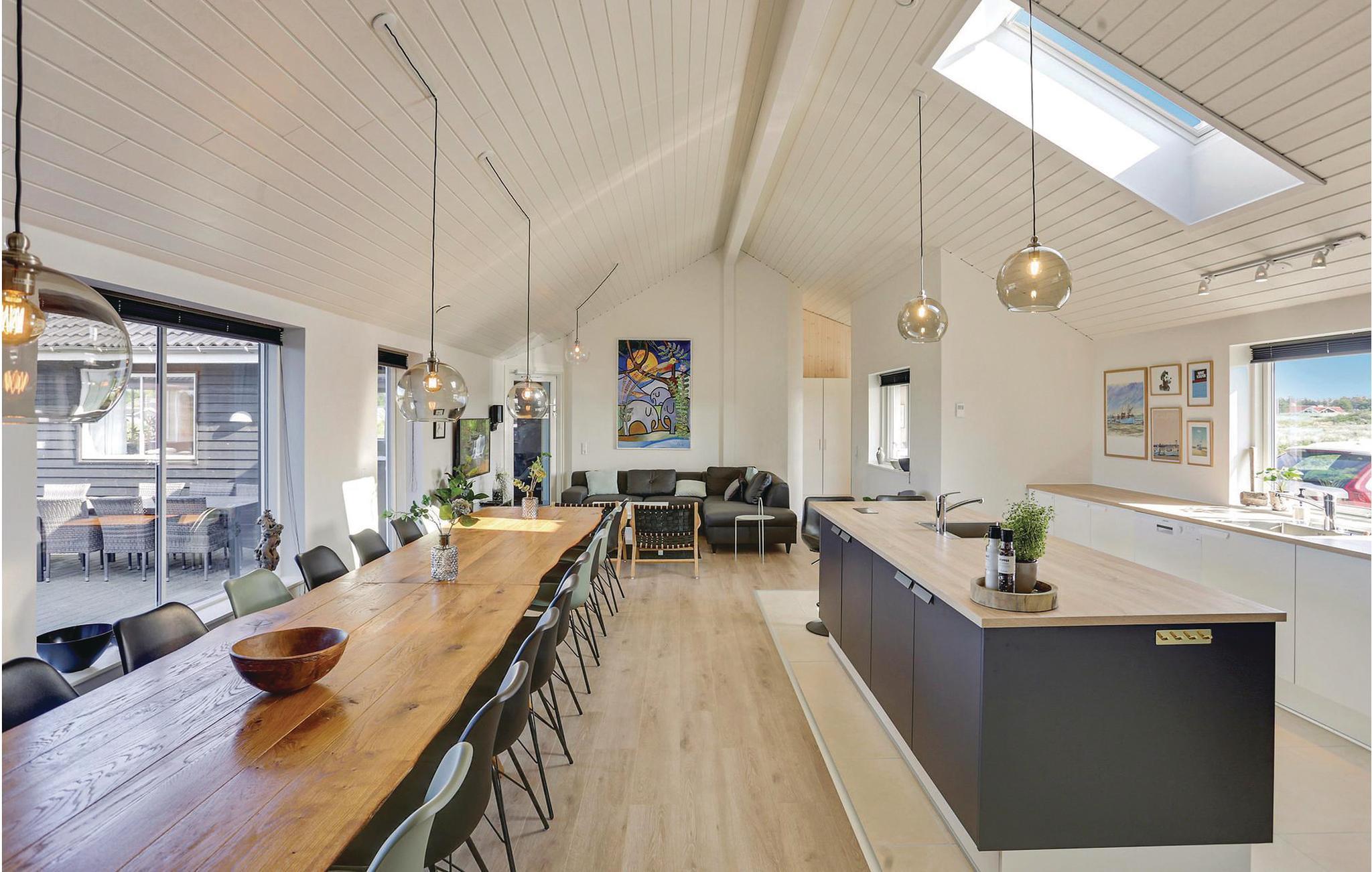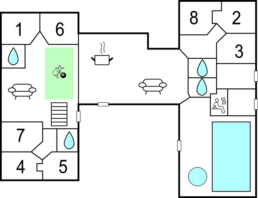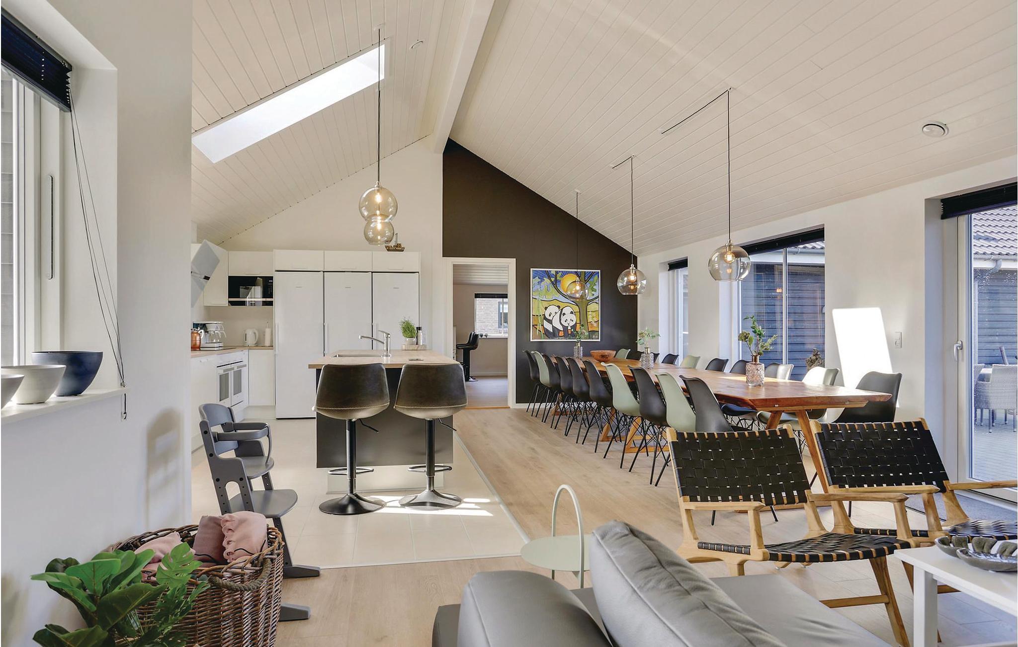 Huset består af 8 soveværelser, hems med 2 sovepladser samt 4 badeværelser, så der er rig mulighed for at I kan være flere familier sammen, og samtidig bevare privatlivet. Derudover får I en stor, lys opholdsstue med plads til alle ved det lange, smukke plankebord i spiseområdet.