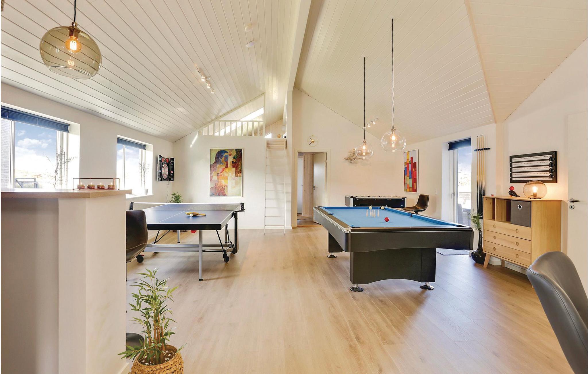 Her har I en hel verden af underholdning indenfor rækkevidde, huset er nemlig udstyret med billardbord, bordtennisbord, sauna og et stort indendørs poolområde med rutsjebane og spabad. I haven er der legestativ til de mindste samt en stor nedgravet havetrampolin. Her kommer I bestemt ikke til at kede jer!