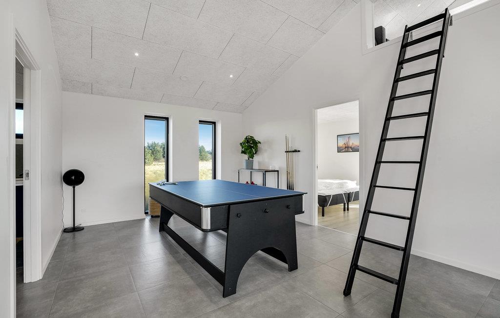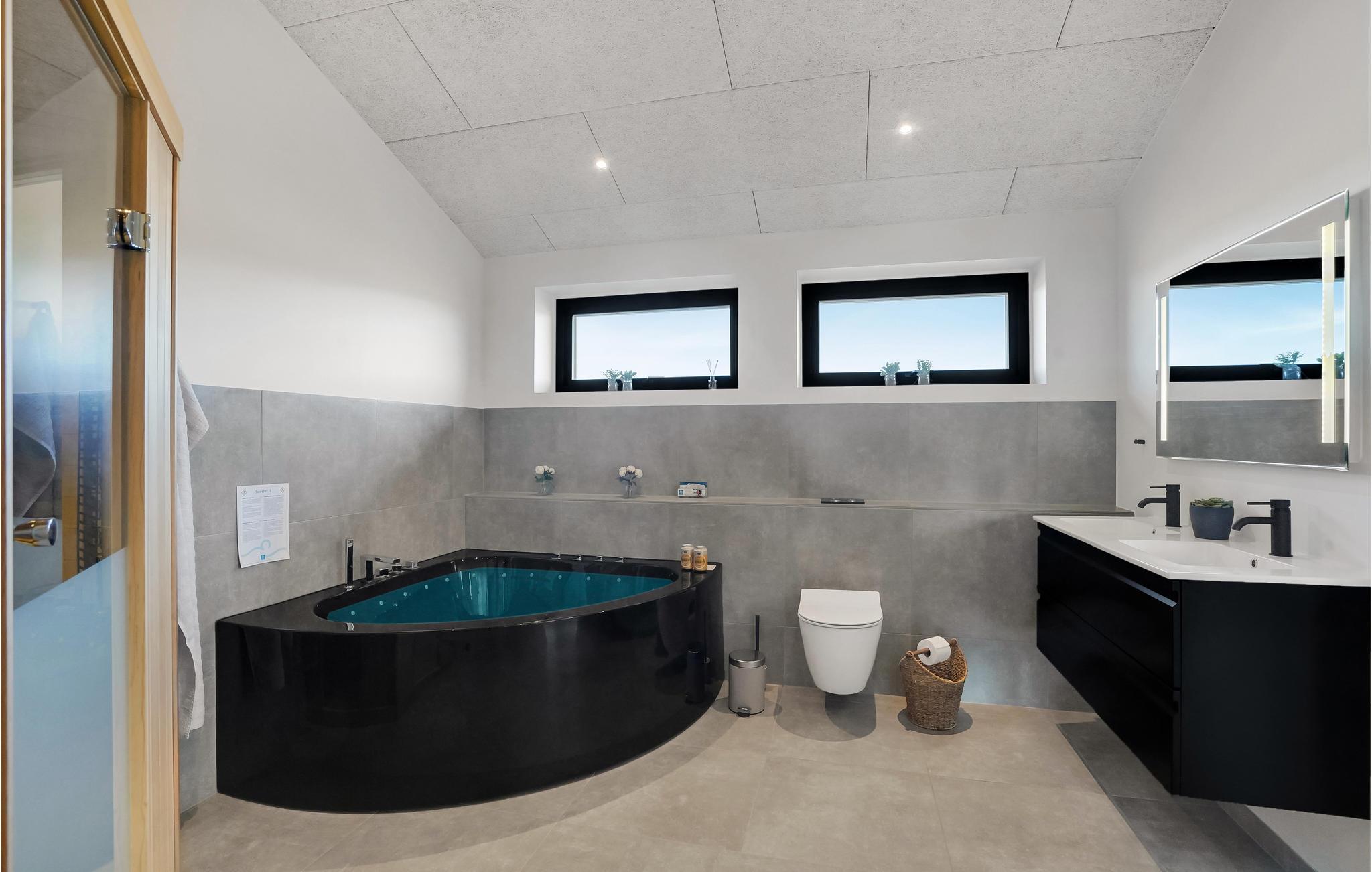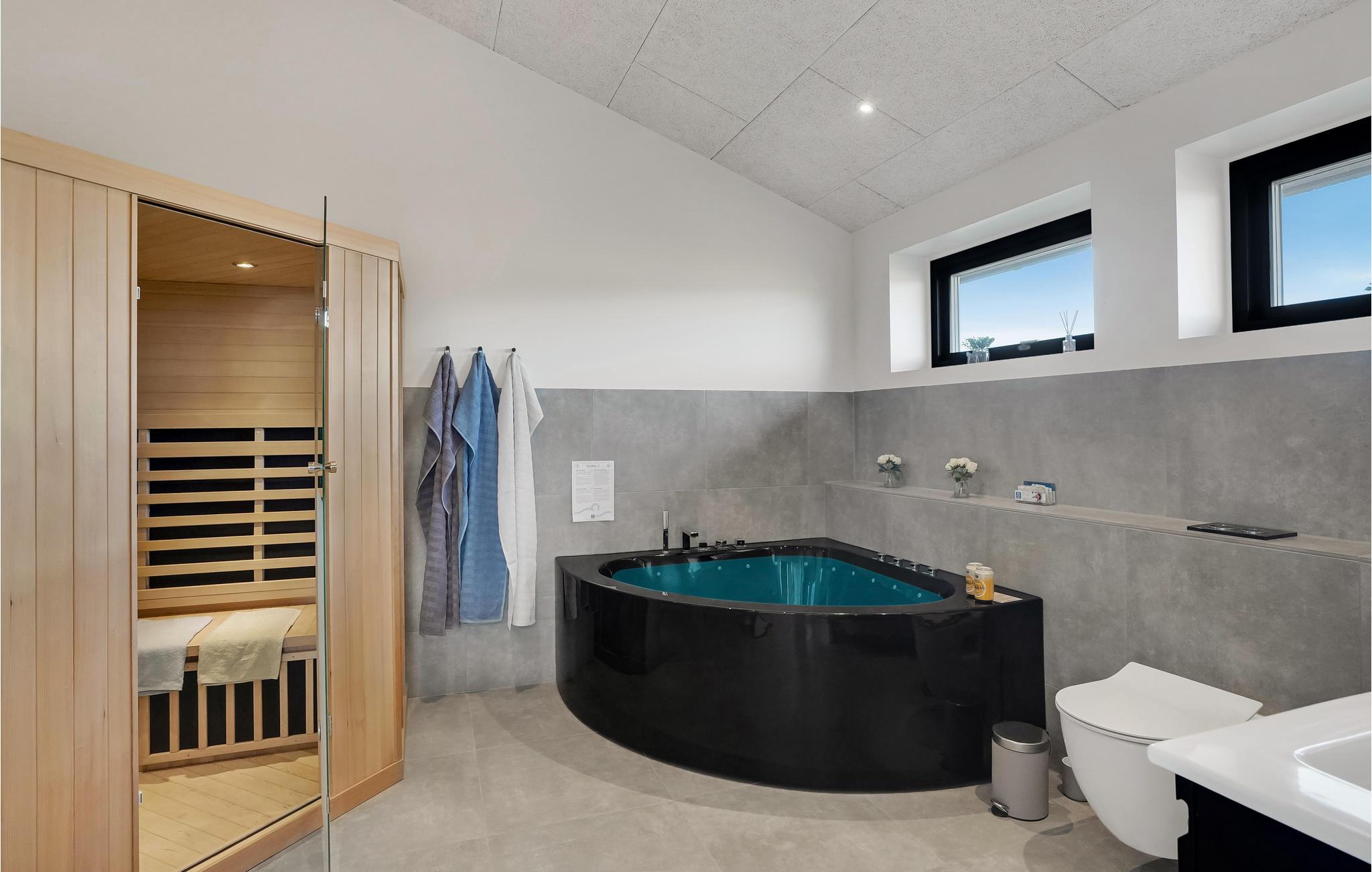 Drømmer I om en ferie tæt på vandet og naturen? Så er I kommet til det rette sted. Glæd jer til at slappe af med hele familien i de lyse værelser i det komfortable hus. Den moderne indretning med klare linjer og dæmpede farver sikrer, at I hurtigt føler jer hjemme her. Lav mad sammen og nyd måltiderne ved det lange spisebord med en smuk udsigt til omgivelserne. Efter en dejlig dag på stranden eller på en udflugt, kan I arrangere bordtennisdueller om aftenen, slappe af i den infrarøde sauna og senere sidde behageligt sammen på komfortable sofaer i lang tid. Nyd solen på terrassen, hvor I altid kan finde et sted i læ for vinden. Afrund en dejlig dag med et måltid fra grillen og tag senere en afslappende tur i det udendørs spabad.
