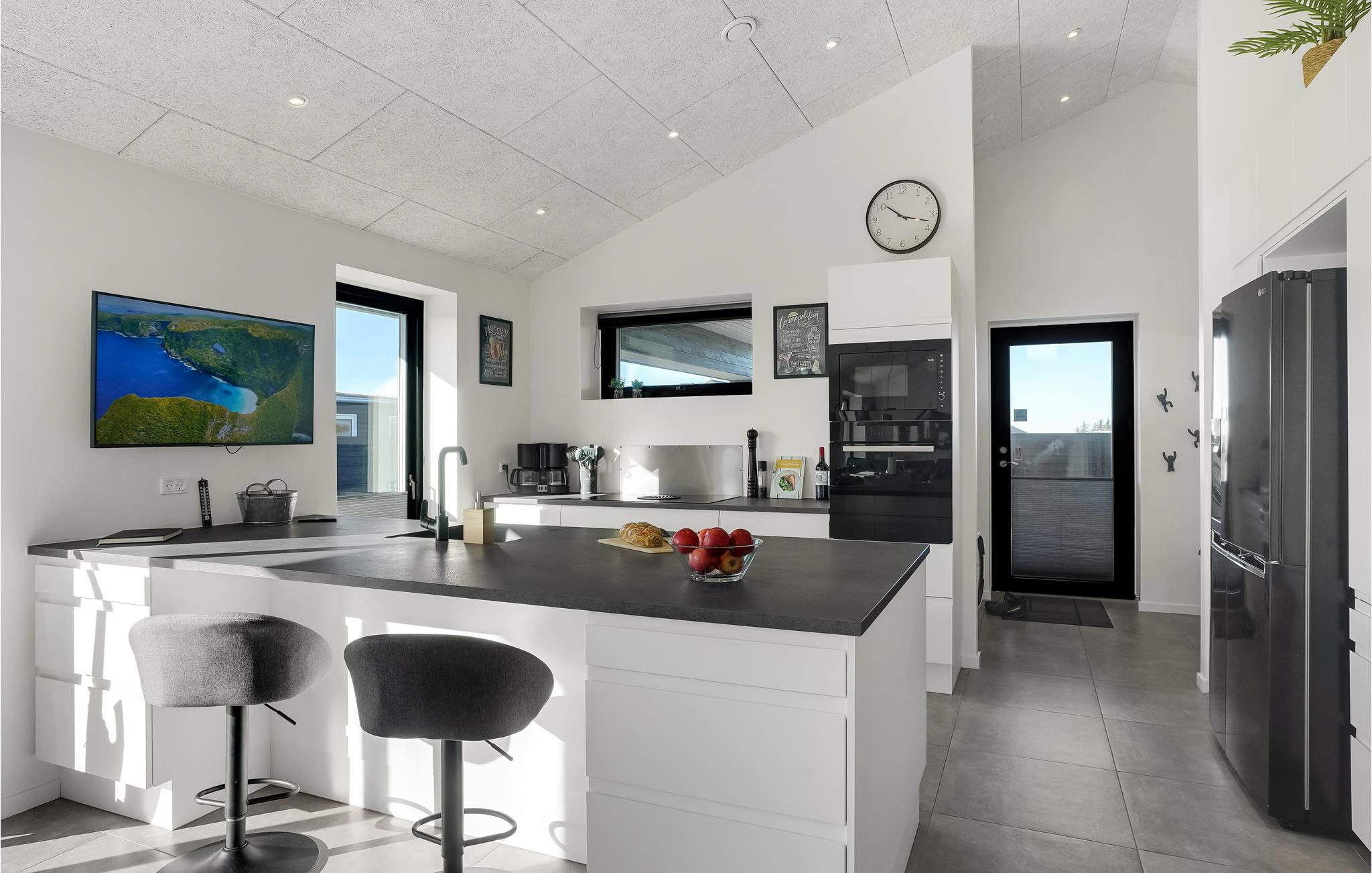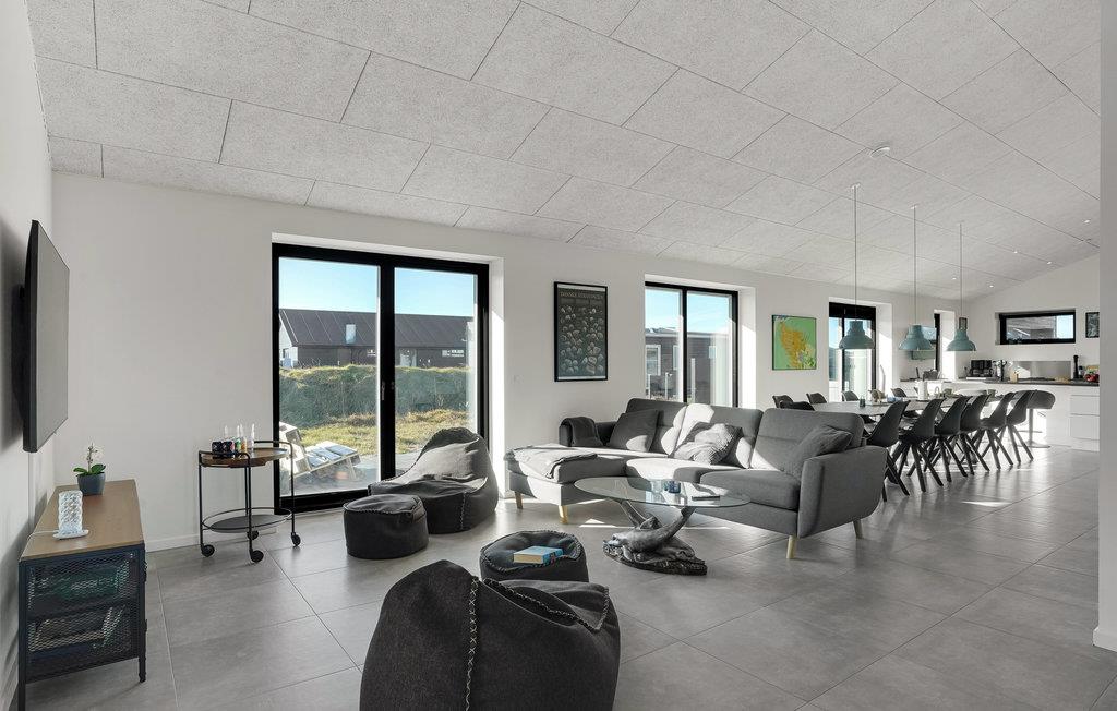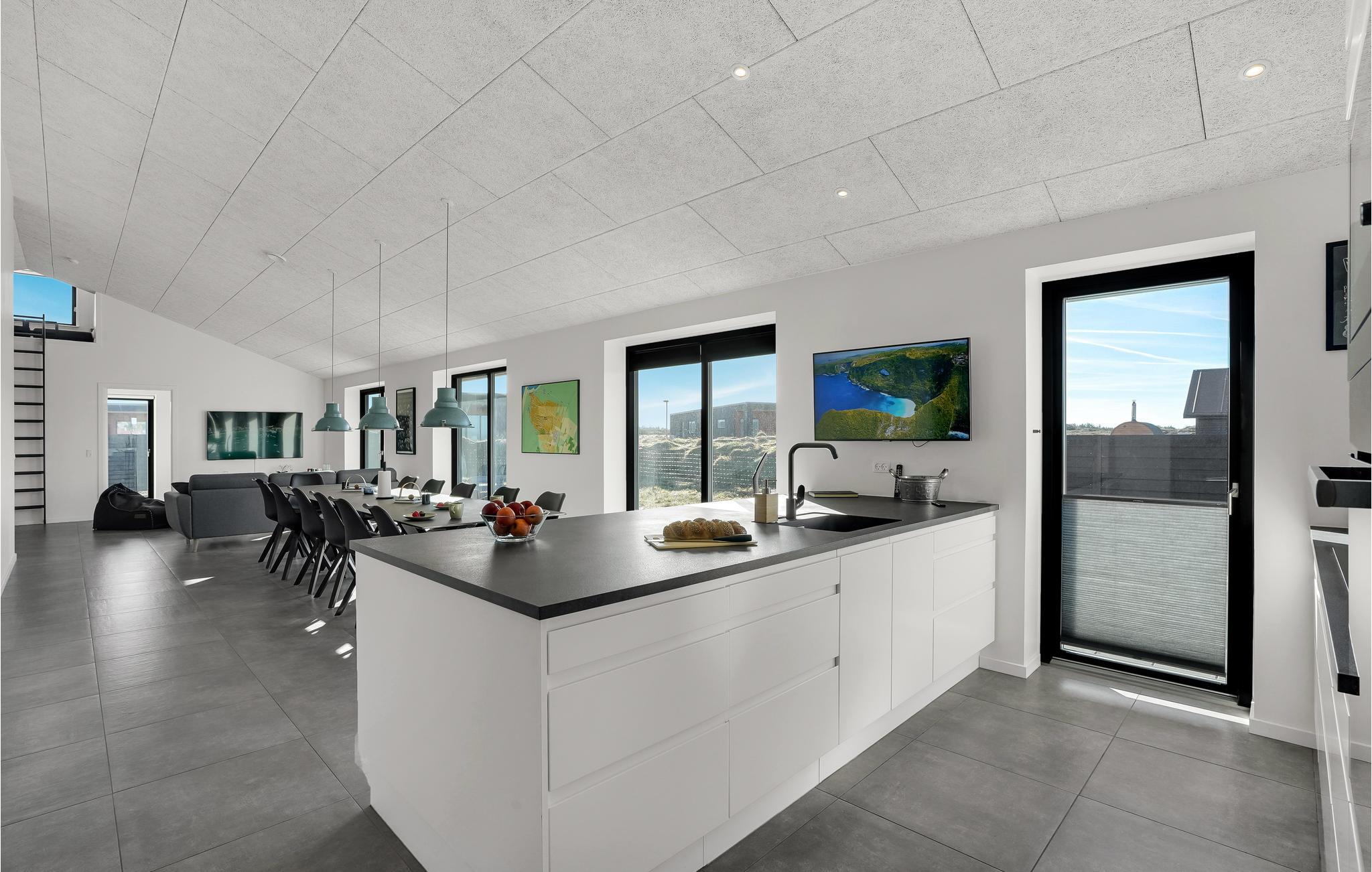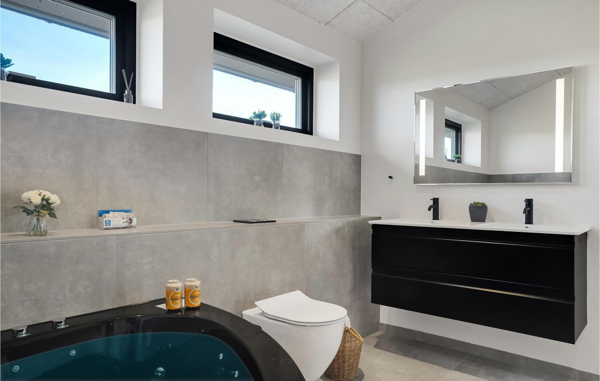 Drømmer I om en ferie tæt på vandet og naturen? Så er I kommet til det rette sted. Glæd jer til at slappe af med hele familien i de lyse værelser i det komfortable hus. Den moderne indretning med klare linjer og dæmpede farver sikrer, at I hurtigt føler jer hjemme her. Lav mad sammen og nyd måltiderne ved det lange spisebord med en smuk udsigt til omgivelserne. Efter en dejlig dag på stranden eller på en udflugt, kan I arrangere bordtennisdueller om aftenen, slappe af i den infrarøde sauna og senere sidde behageligt sammen på komfortable sofaer i lang tid. Nyd solen på terrassen, hvor I altid kan finde et sted i læ for vinden. Afrund en dejlig dag med et måltid fra grillen og tag senere en afslappende tur i det udendørs spabad.