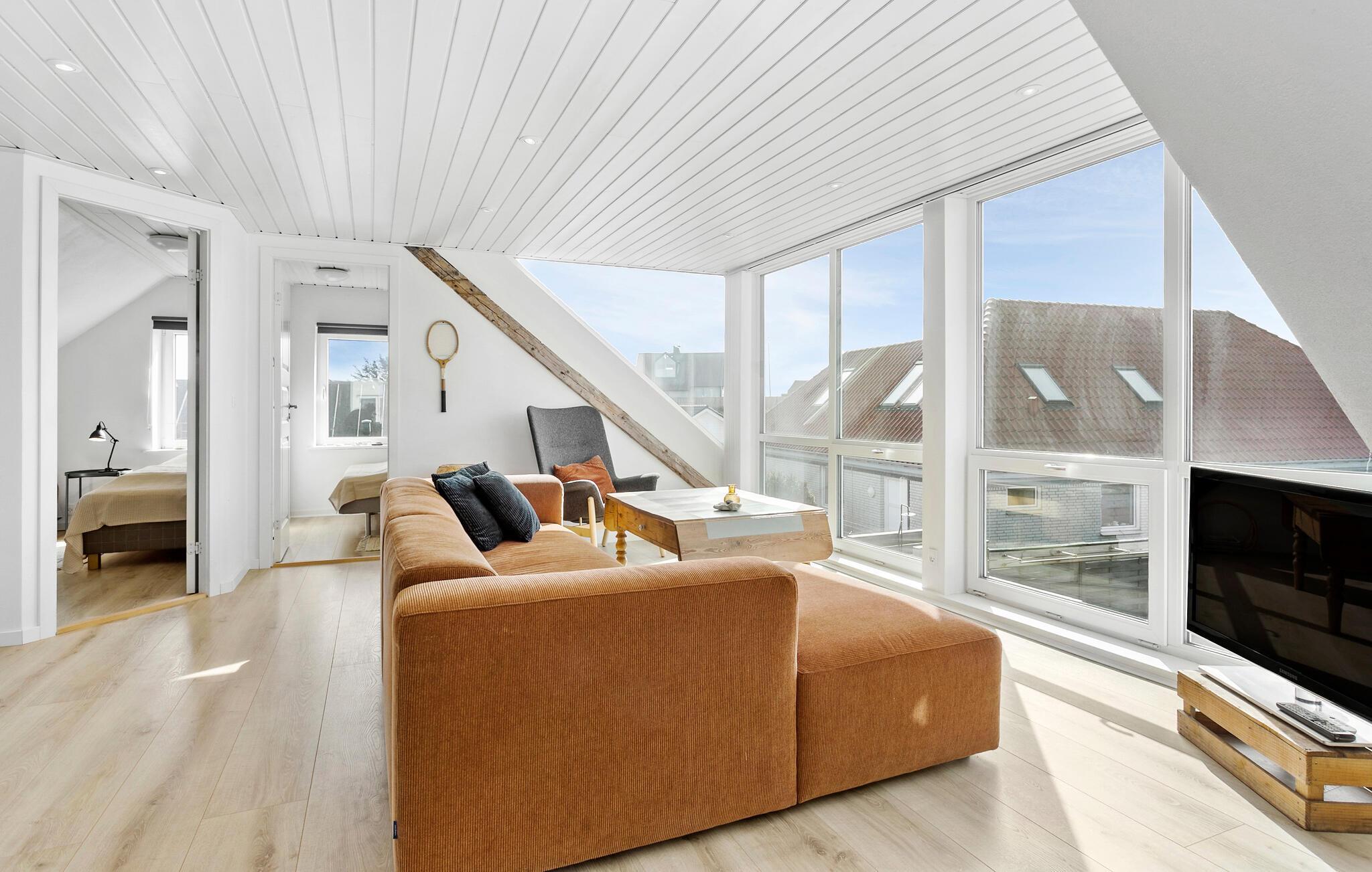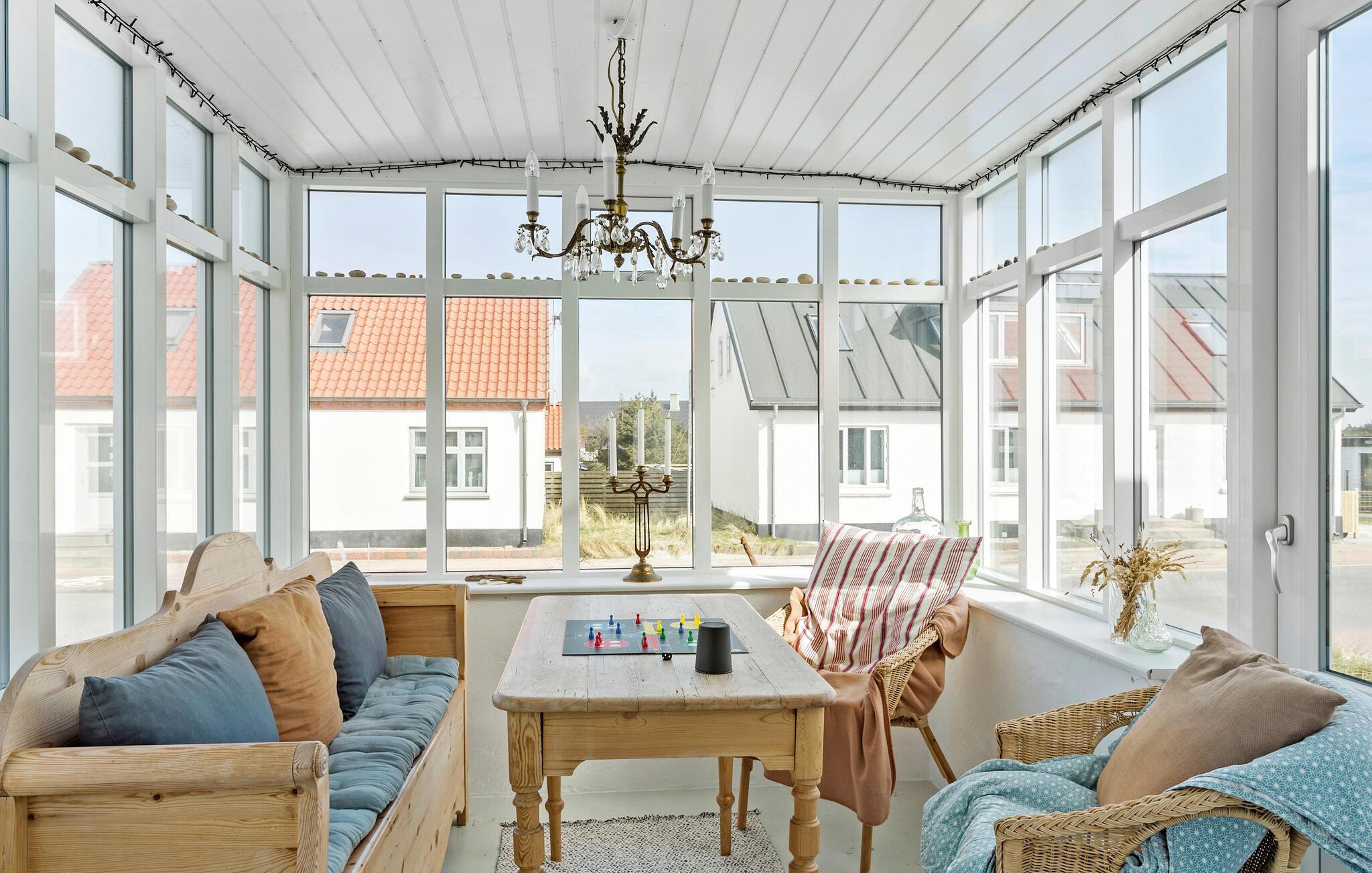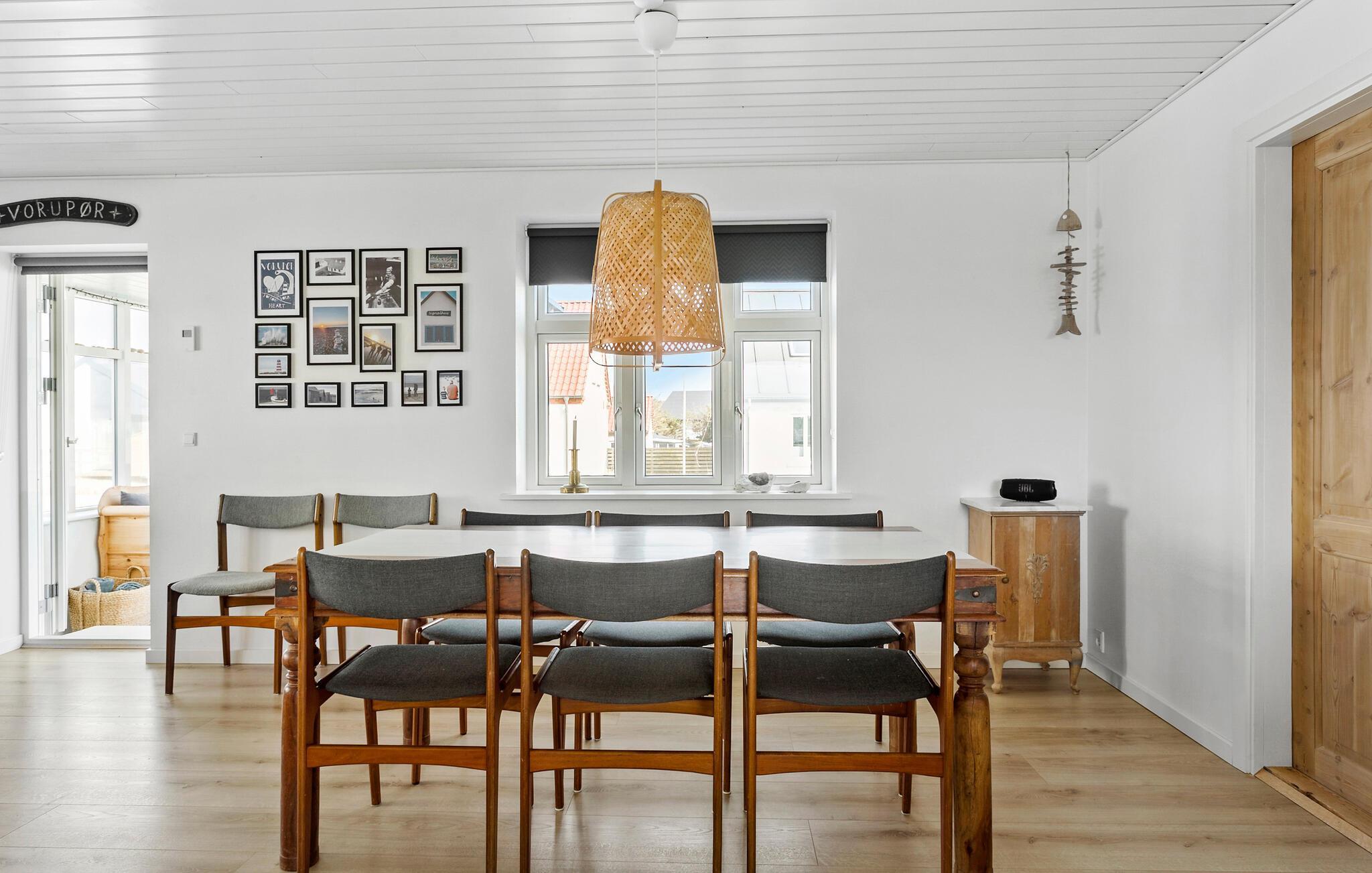 Tag familien under armen og rejs til det vestlige Jylland, hvor der venter jer et vidunderligt indhold i dette rummelige hus. Huset ligger kun få minutters gang fra Vesterhavet, og indvendigt fremtræder det yderst flot over to etager med gode indretningsløsninger, komfortable møbler og store vinduespartier, der særligt fra første sal giver en helt fantastisk udsigt. Lad familiens kokke kræse om livretterne i det moderne køkken og dæk op til den store middag ved spisebordet. Efter aftensmaden kan I hive brætspillene frem eller rykke over i sofaen med snacks og en god film på tv'et, mens I lægger planer for de kommende dage.