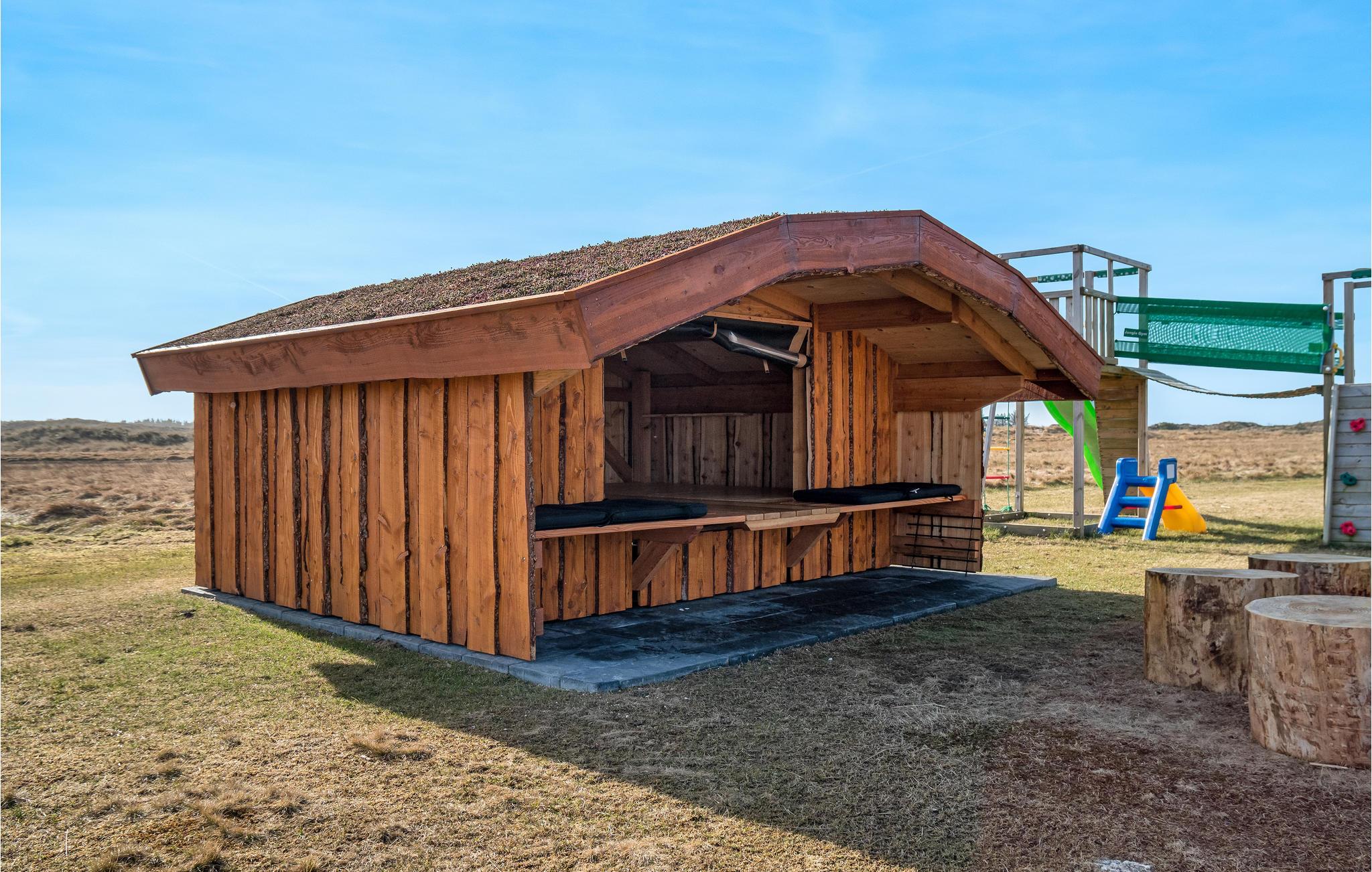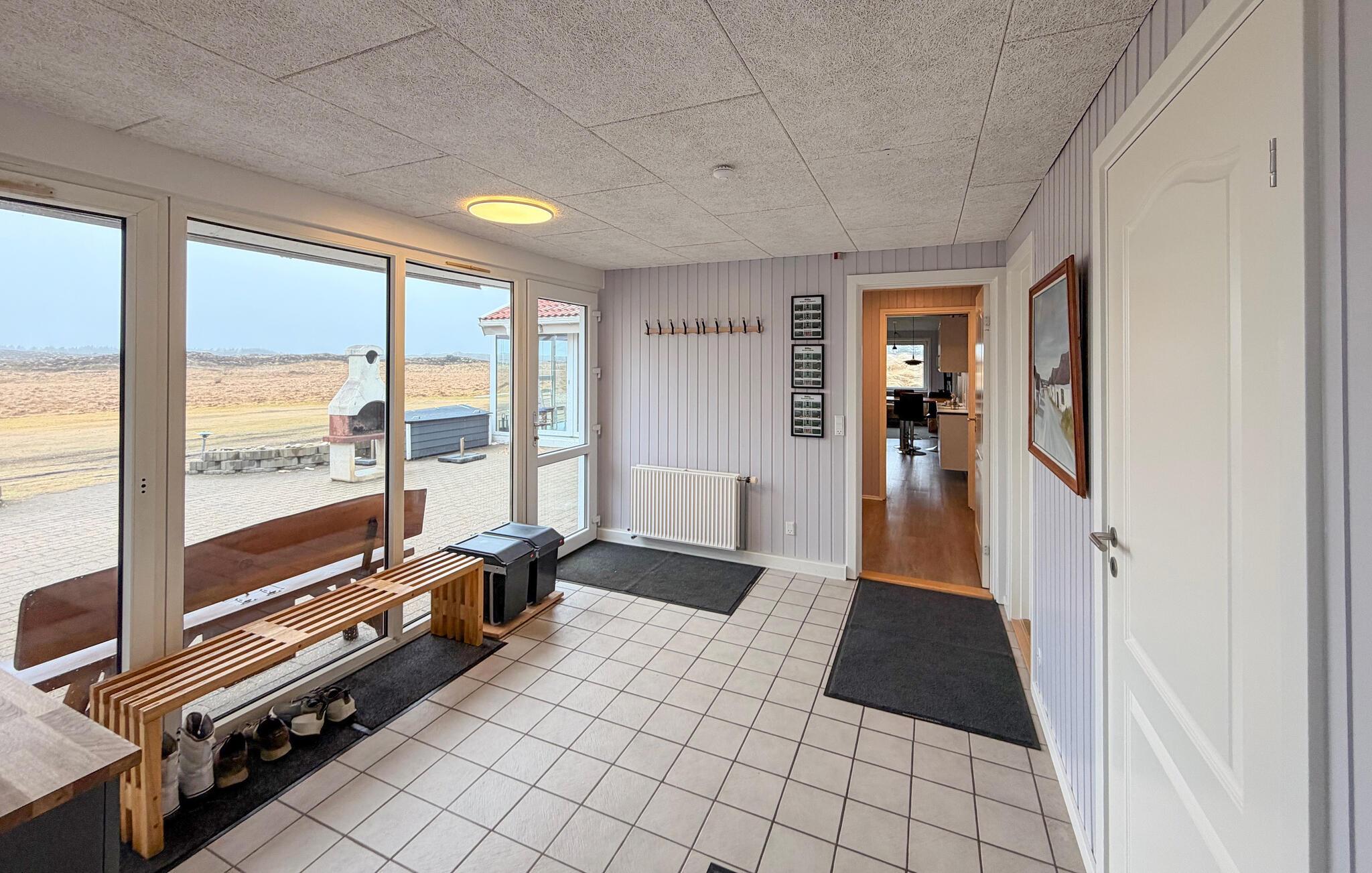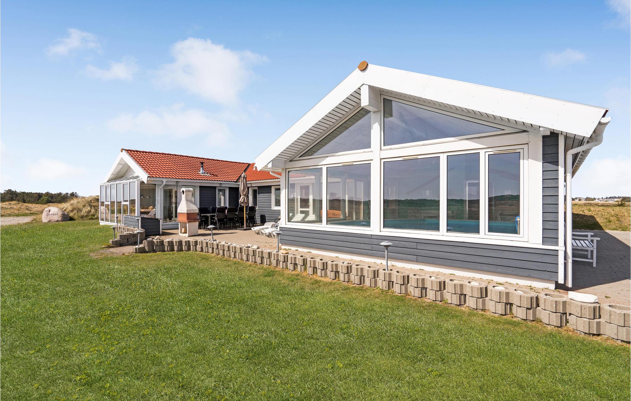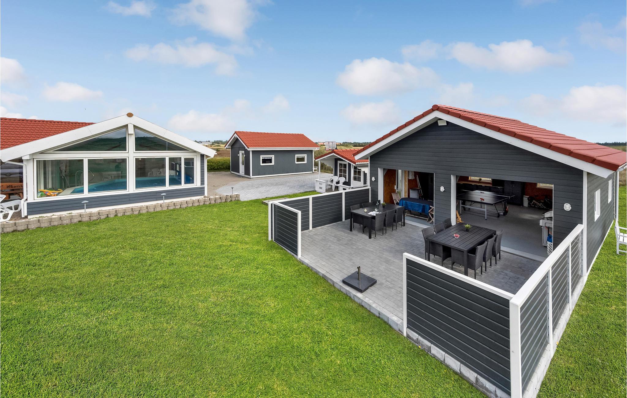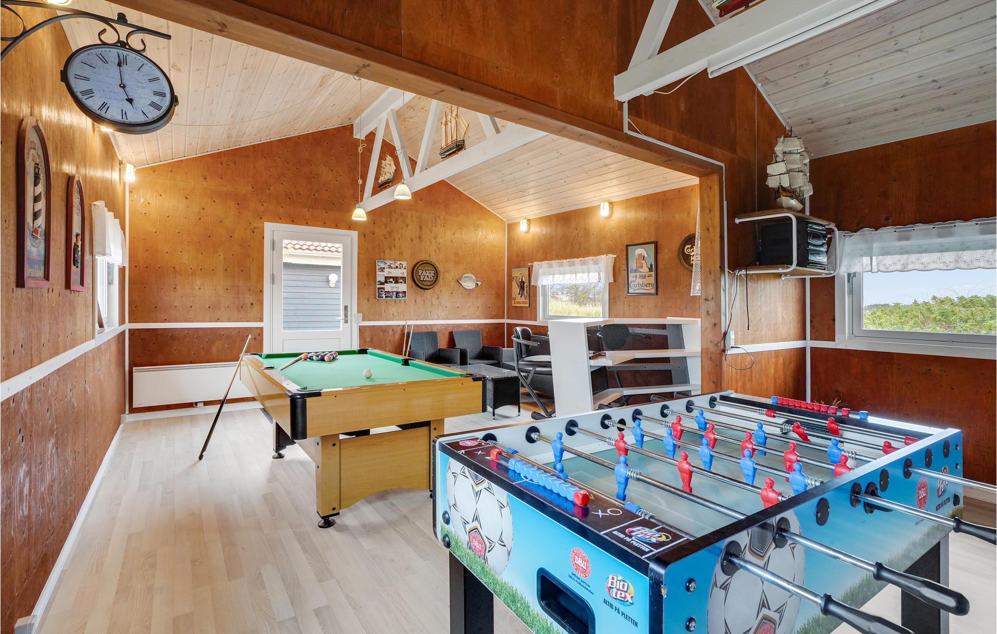 Dejligt sommerhus der ligger lidt udenfor det traditionelle sommerhusområde, og dermed rigtig meget for sig selv. Her er der rig plads til at familier kan boltre sig såvel ude som inde. Huset ligger med udsigt og grund ned til et fredet areal, og har derfor en meget ugenert beliggenhed. Her findes en masse aktivitetsmuligheder bl.a. kan børnene boltre sig på legepladsen, og de voksne kan hygge sig i det separate aktivitetshus, der er indrettet som et rigtigt herreværelse med bar, poolbord m.m. uanset vejret har I rig mulighed for at hygge jer i den fine poolafdeling med både swimmingpool og spabad.