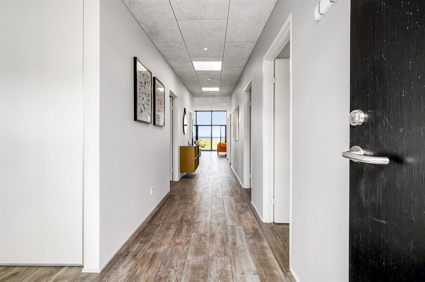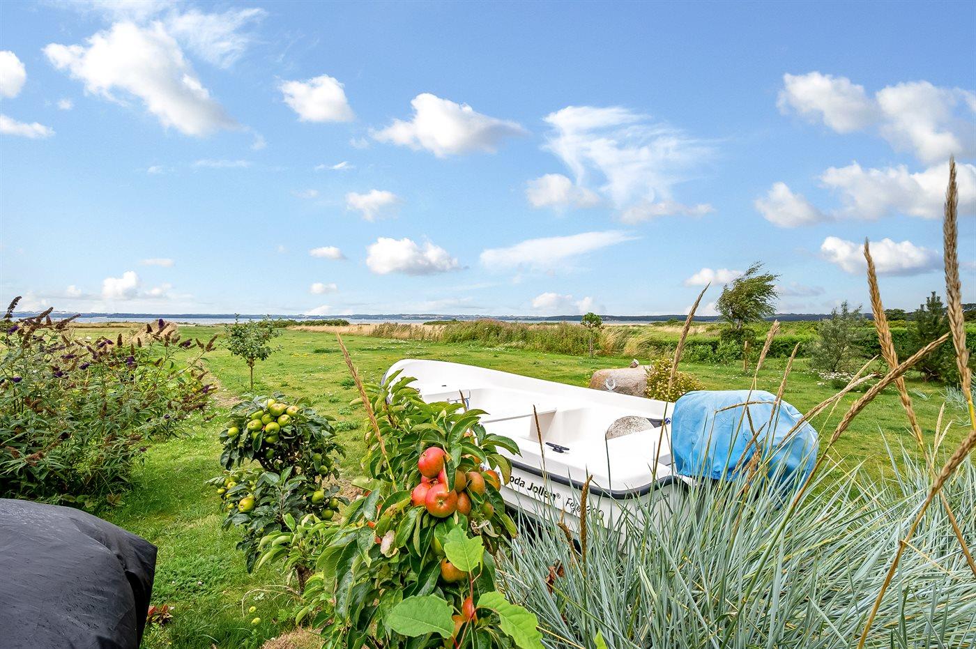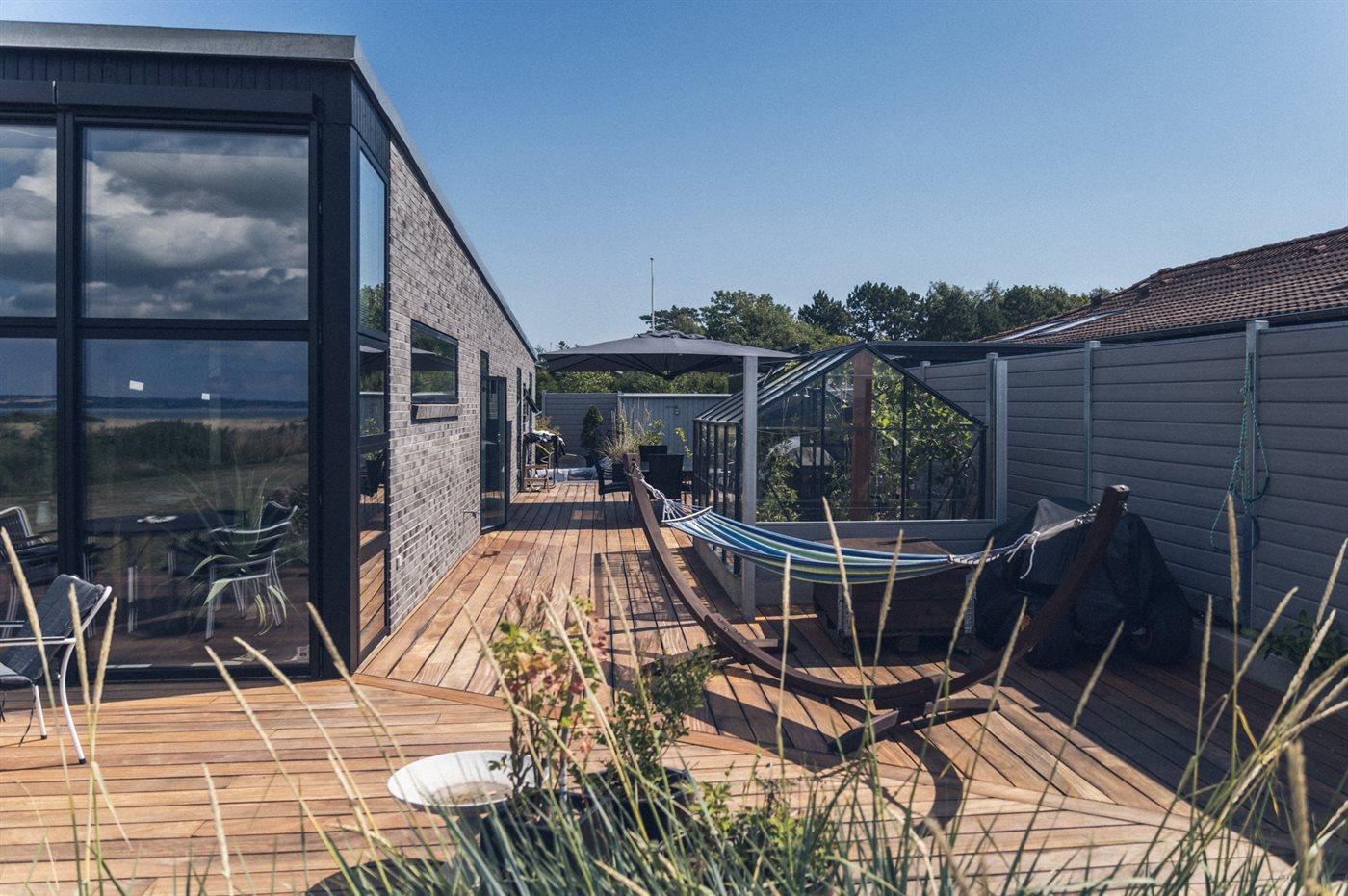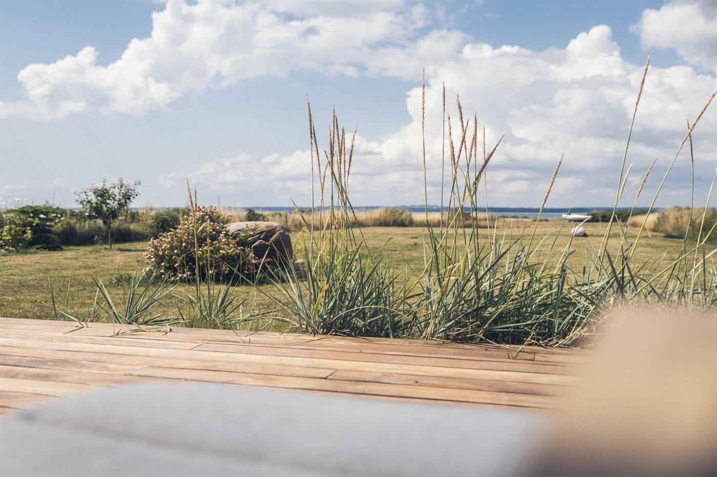 Huset er bygget i 2021 og ligger for enden af en lille, rolig vej uden trafik – på en grund, som grænser direkte op mod stranden og med naturen helt tæt på. Den store træterrasse følger huset hele vejen rundt, så der altid er en god krog med sol, læ eller skygge under parasollen. Her er det oplagt at starte dagen med kaffe i morgensolen og slutte af med aftensmad og udsigt til solnedgangen over bugten. Der er også mulighed for at slappe af i den udendørs spa med standvand og plads til 6 personer.
