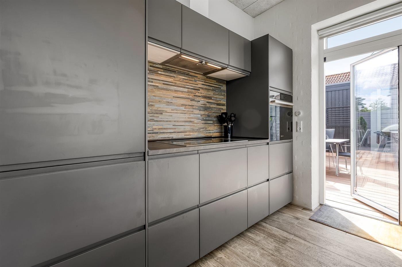 Køkkenet er udstyret med 1 køleskab. Der er 4 induktionskogeplader, varmluftovn, mikrobølgeovn samt opvaskemaskine.