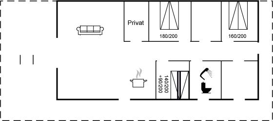 Der er i alt 3 soveværelser. Sovepladserne fordeler sig på: 4 sovepladser i dobbeltsenge. 3 sovepladser i køjesenge. Derudover er der 1 stk. barneseng.