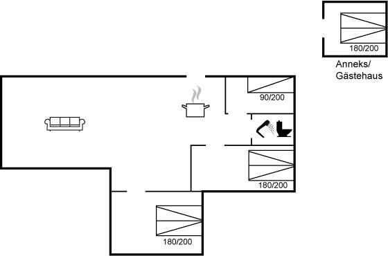 Hybenhuset rummer to dobbelte soveværelser, et enkeltmandsværelse samt et hyggeligt anneks med to sovepladser. En oplagt ramme for familien eller for gæster, der ønsker lidt ekstra privatliv.