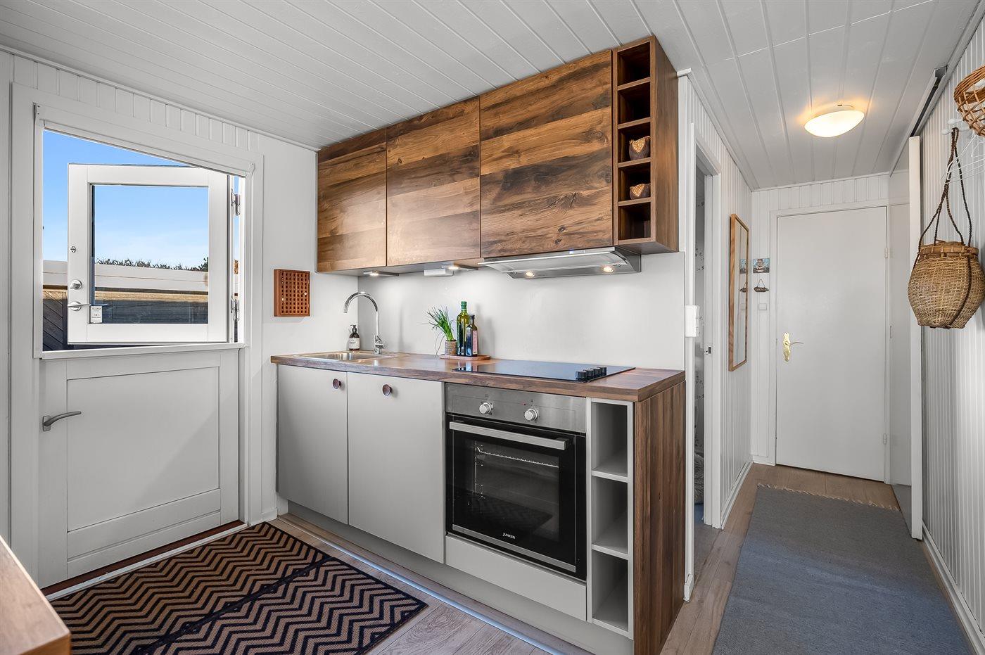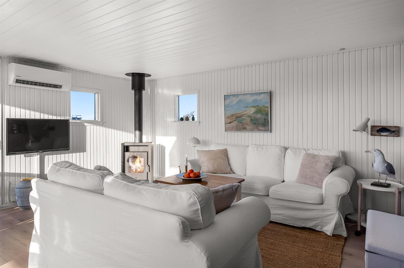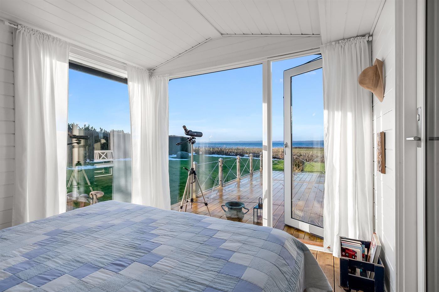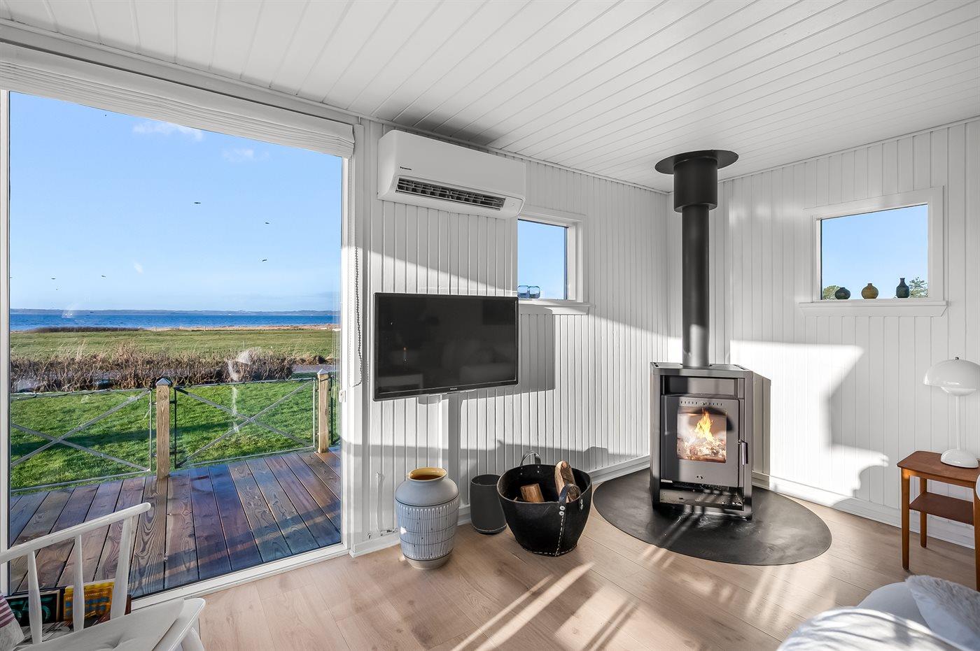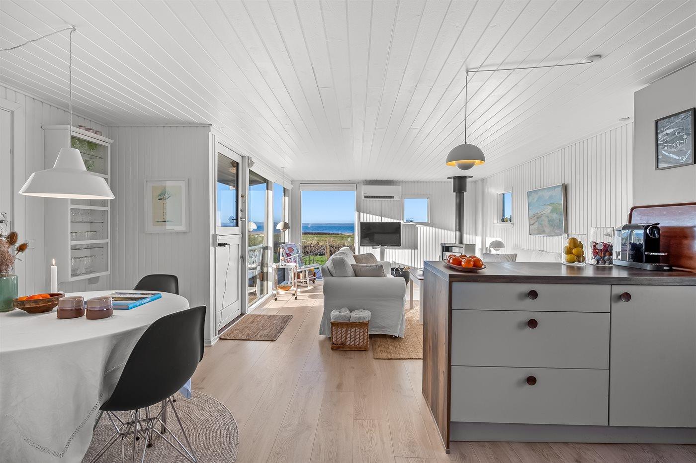Lys, luft og hav mødes i en særlig ro. Huset er istandsat og indrettet lyst og nænsomt, så naturen og udsigten får lov at fylde. Den nye træterrasse mod havet, delvist overdækket, danner rammen om de lange, langsomme feriedage. I starter morgenen med kaffe og spejlblankt vand foran jer. Om aftenen går solen ned lige foran huset, og et aftendyp i det klare vand bliver den naturlige afslutning, mens himlen farves gylden og rosa over Kalø Slotsruin.