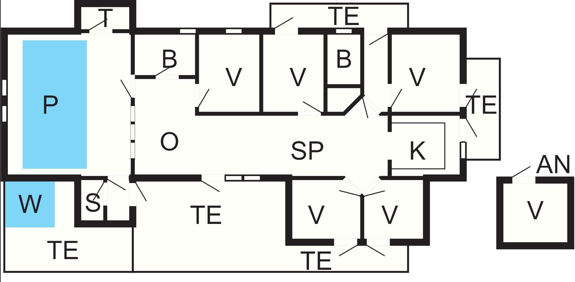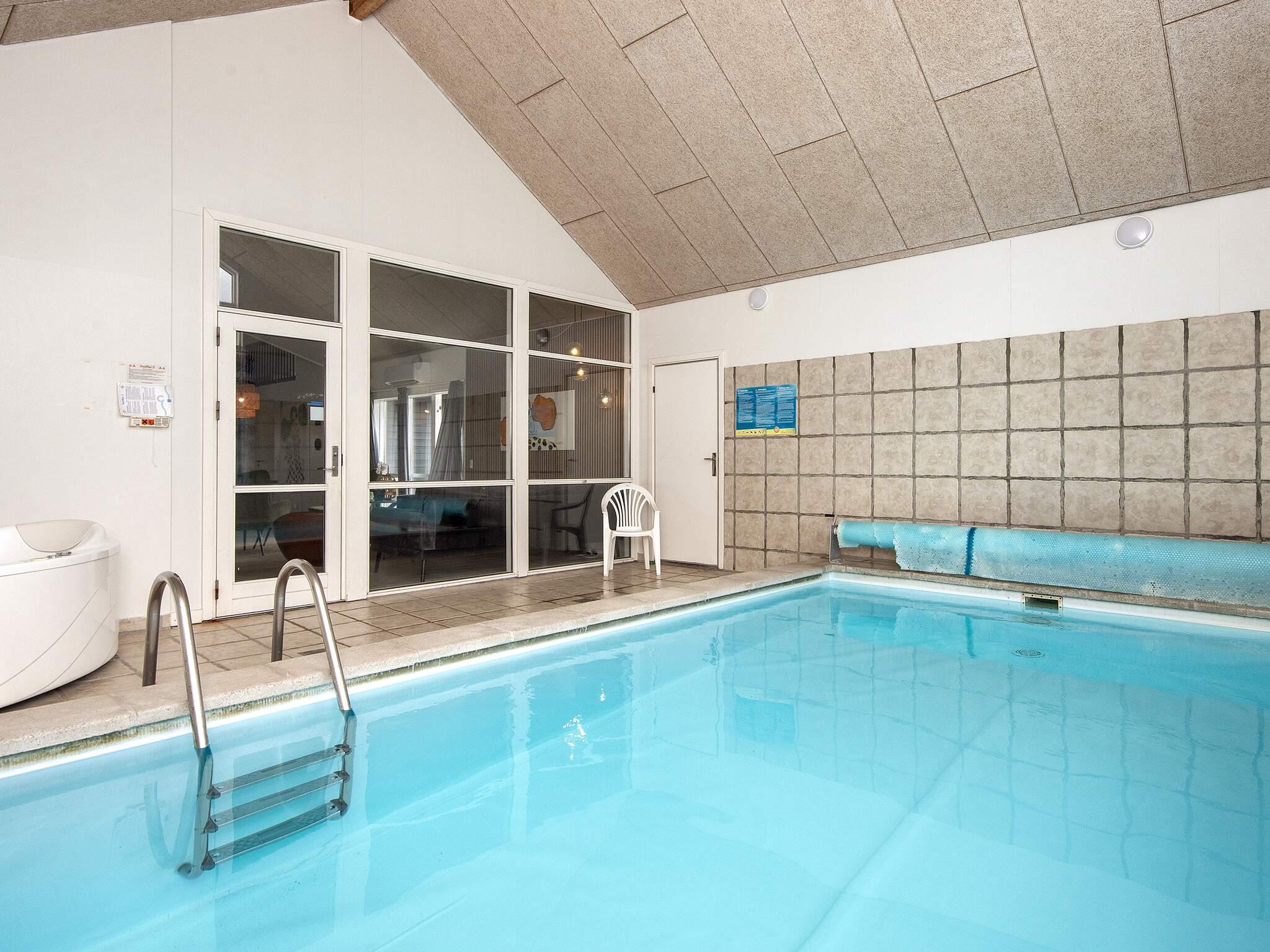 Sommerhuset byder på en stor swimmingpoolafdeling med swimmingpool (6,0 x 3,5 x 1,4 m) samt sauna til 4–5 personer. Huset har to badeværelser, begge med bruseniche, bademiljø og gulvvarme.