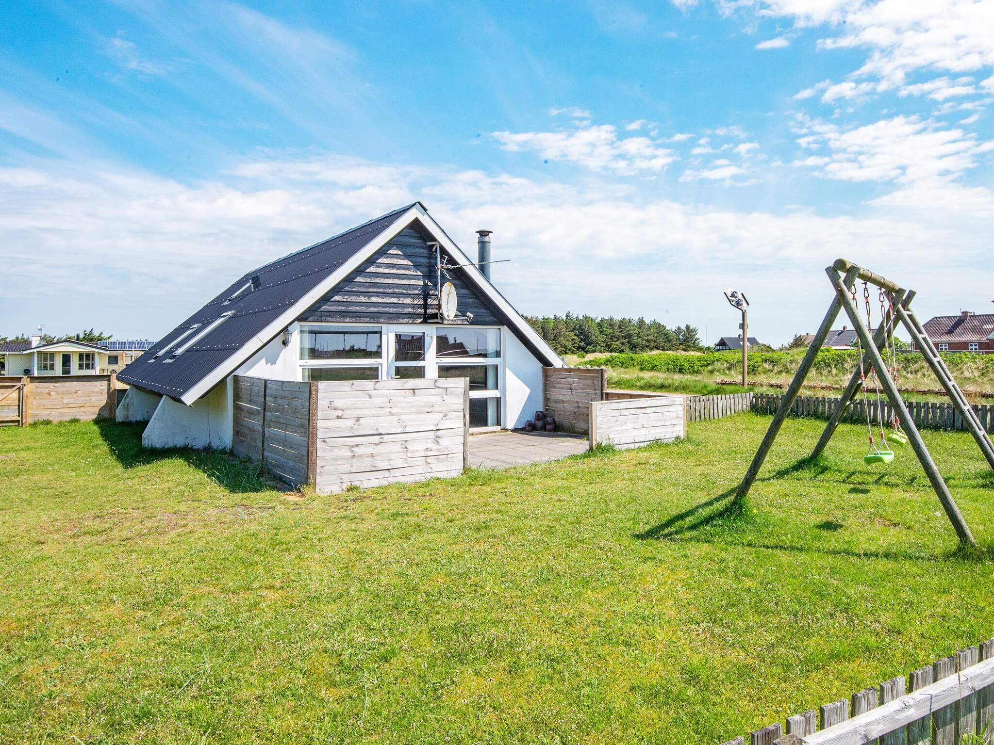 Familiesommerhus, tilbygget og moderniseret i 2007, med bl.a. badeværelse og en stor hems. Huset er beliggende på en 1250 m² stor natur/klitgrund med ca. 200 meter fra Vesterhavet og den store sandstrand. Huset er velindrettet med hyggelig møblering og ca. 200 m til Vesterhavet. Indrettet med 2 værelser, badeværelse med bruseniche og gulvvarme, stor hems med ovenlysvinduer og stue med brændeovn, tv med parabol, dvd-afspiller og video. Størstedelen af grunden er indhegnet med lavt stakit, som kan gøre ferien tryg for familien med små børn eller lille hund. Enkelte lokale forretninger holder helt eller delvist lukket i D+E-sæsonen. Lille lokal jernbane findes ca. 15 m fra huset.