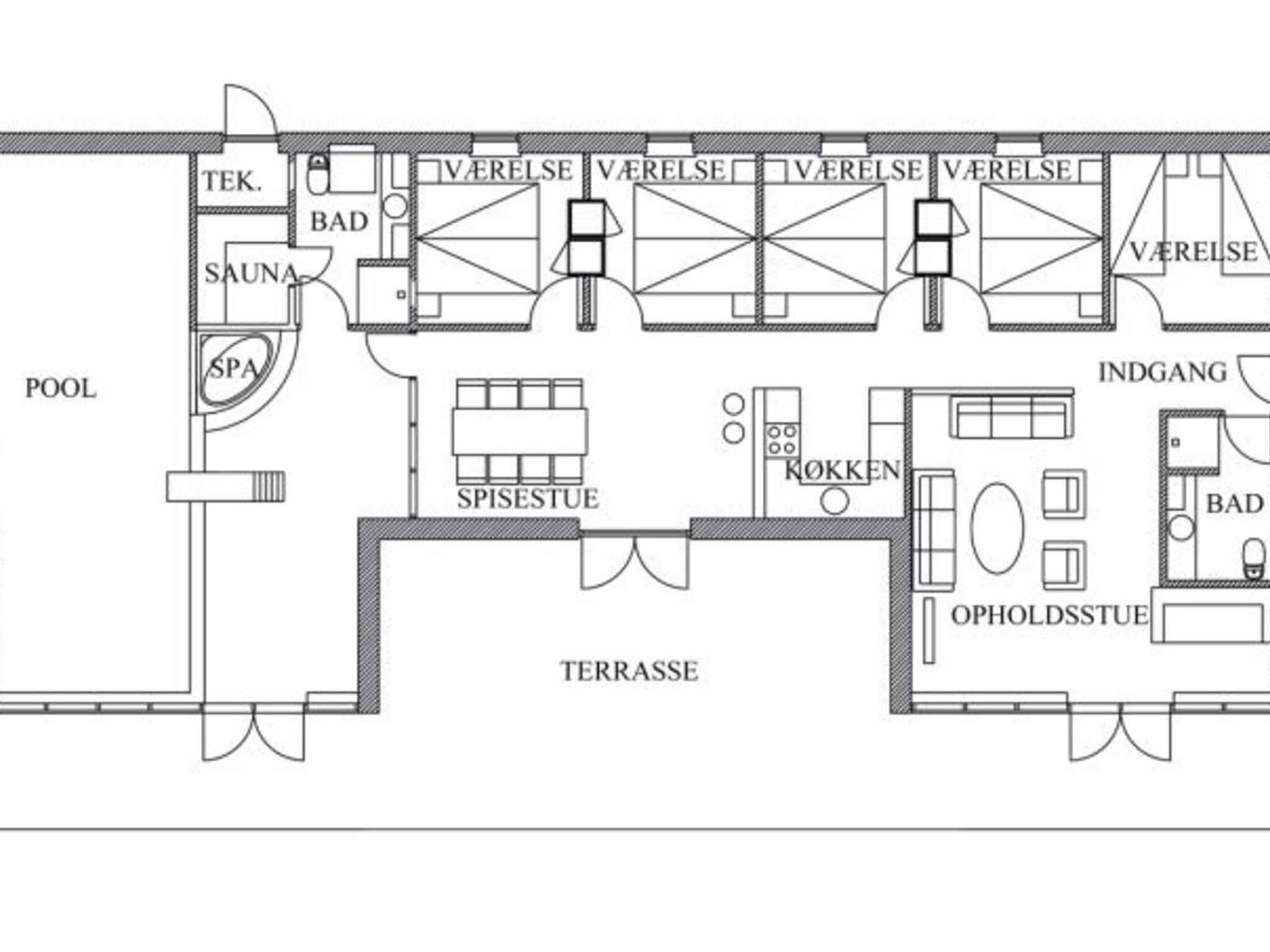 Kun 500 m fra Vesterhavet ligger dette 210 m² store poolhus på en 3000 m² stor naturgrund.