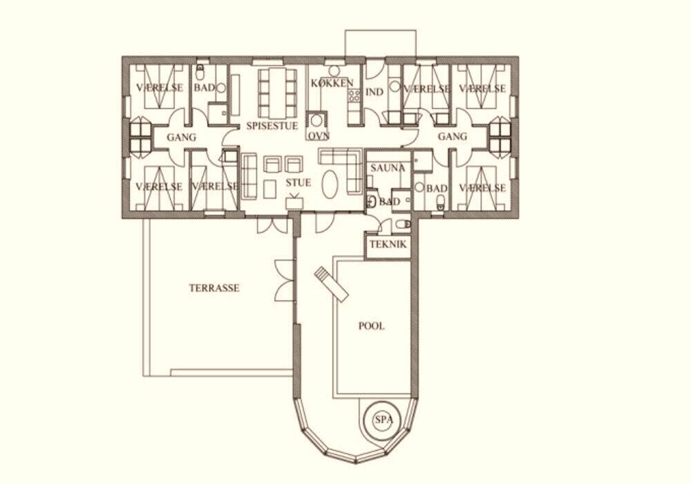 6 Soveværelser: (1DS)+(1DS)+(1DS)+(1DS)+(1DS)+(1DS)