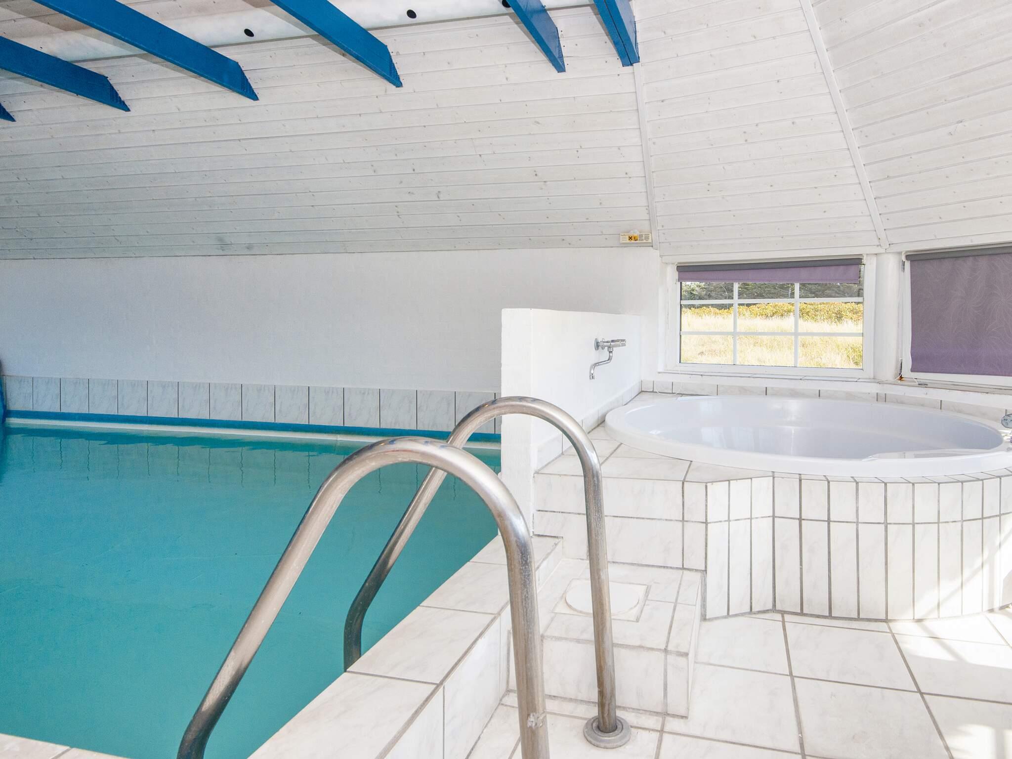 Kun 200 m fra det brusende Vesterhav ligger dette stråtækte poolhus på 200 m². Huset ligger ca. 12 km fra Thyborøn, hvor der er forskellige oplevelser for hele familien, f. eks. JyllandsAkvariet eller Sea War Museum. Murstenshuset, som er opført i 1996, er beliggende på 2700 m² stor naturgrund, forholdsvis tæt på jernbanen. Hele familien kan samles i det flotte poolrum, hvor naturen kan nydes fra det runde spabad gennem de store panoramavinduer. Til feriens solrige dage er den lukkede terrasse udstyret med havemøbler og grill. Børnene har gynger og sandkasse til rådighed. De 3 badeværelser er med toilet, håndvask, bruseniche og gulvvarme. El-radiatorer, gulvvarme og brændeovn opvarmer huset. Endvidere er der en økonomisk varmepumpe, som også kan køle i den varme sommertid. I poolhuset er der 14 sovepladser: 4 værelser med dobbeltsenge og 2 værelser med hver 1 enkeltseng og 1 køjeseng. 2 husdyr er tilladt. Internet og TV med fiberbredbånd. Kabel TV med bl.a. DR, TV2 og Charlie. RYGNING ER IKKE TILLADT.