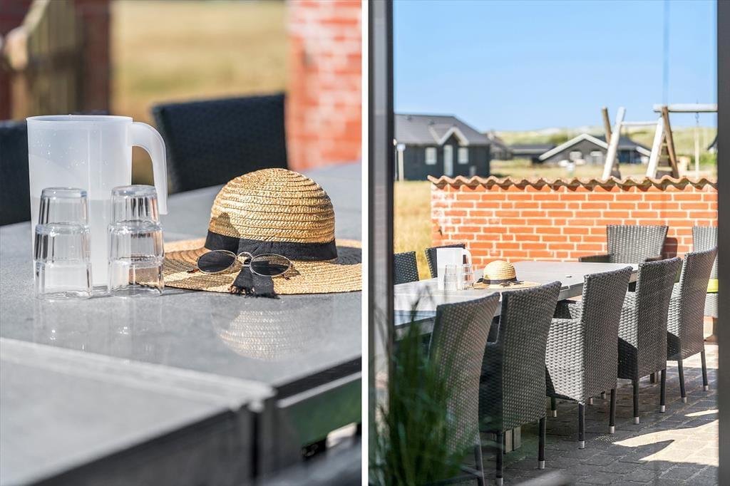 Udendørs venter en stor, lukket terrasse, hvor du kan nyde solen i behagelige liggestole eller samles omkring grillen til hyggelige middage under åben himmel. Den 2.930 m² store grund giver masser af plads til leg og boldspil, og for de yngste er der både gynge og sandkasse. Med kun 350 meter til Vesterhavet er det nemt at tage en forfriskende dukkert eller gå en tur langs den brede sandstrand, mens du lytter til bølgernes beroligende brusen.