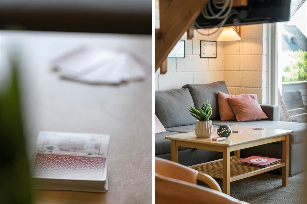 Når du træder ind i sommerhuset på Fourmivej 29, mærker du straks den lyse og hjemlige atmosfære, der præger begge etager. I stueplan samles familien omkring det åbne køkken-alrum, hvor madlavning, feriesnak og spil let smelter sammen til hyggelige stunder. Indretningen er både enkel og charmerende med sans for detaljer, og de store vinduer trækker dagslyset ind og giver udsyn til haven. Når dagens oplevelser har sat sig i kroppen, kan du forkæle dig selv med et varmt bad i husets indendørs spa – det perfekte pusterum efter en lang dag i klitterne. Huset er ideelt til både par og familier – og hvis I er flere generationer afsted, giver de to plan jer mulighed for både fælles nærvær og små pauser hver for sig.