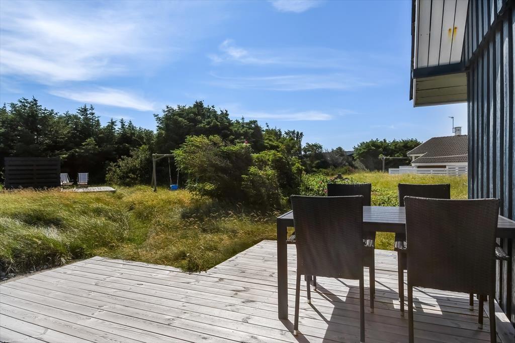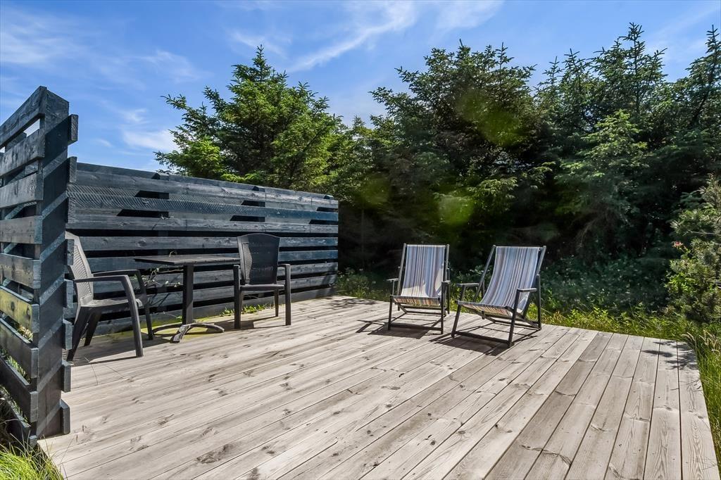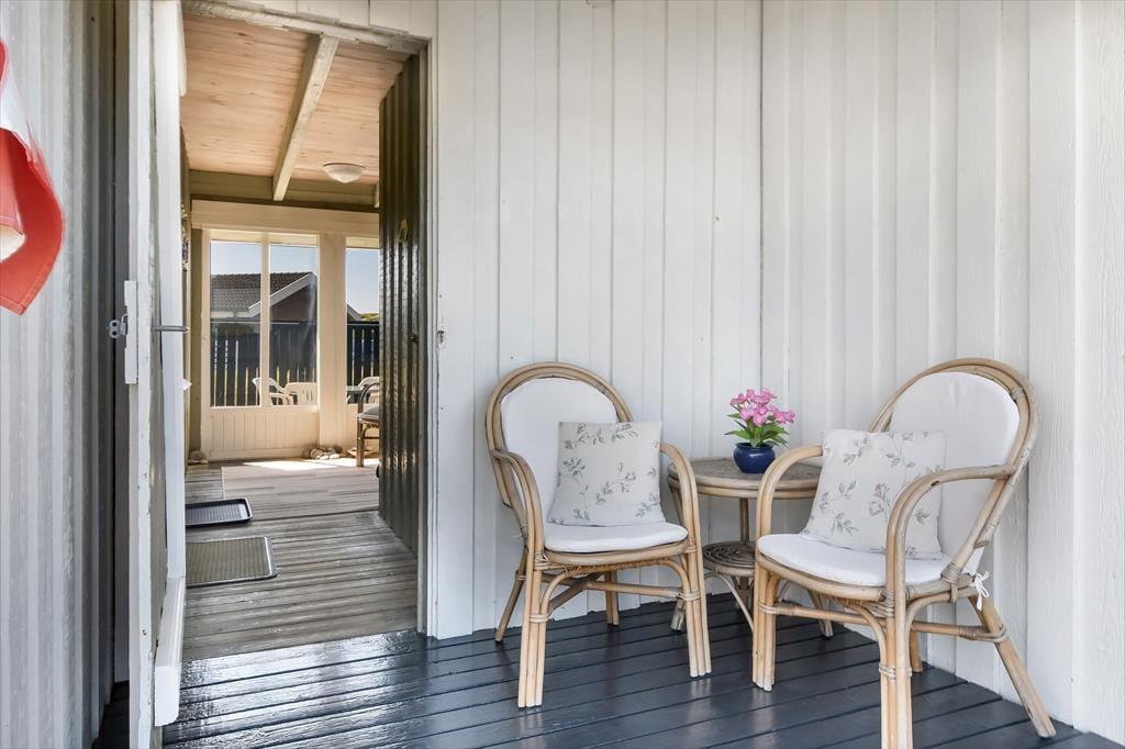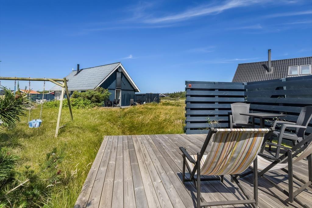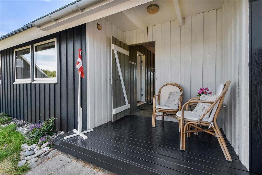 Udenfor byder sommerhuset på flere terrasser med havemøbler, så I altid kan finde en god plads i solen – eller i skyggen, når solen står højt på himlen. Det er oplagt at spise dagens måltider ude, lade børnene lege frit, eller bare læne sig tilbage og lytte til fuglesang og vindens sagte susen i græsset. I det fredelige område kan I slappe helt af, uden at blive forstyrret af trafik og støj – og børnene kan trygt boltre sig i haven eller tage på små opdagelser omkring huset. Her er feriestemningen aldrig langt væk, og dagene kan bruges præcis, som I har lyst til – med tid og ro til bare at være.