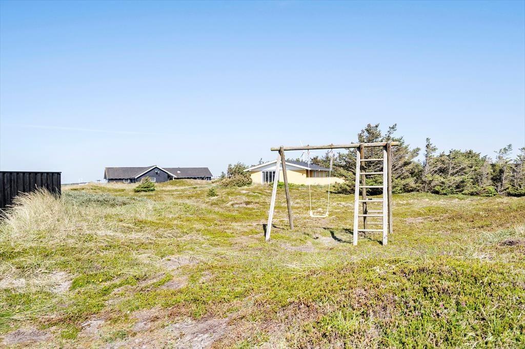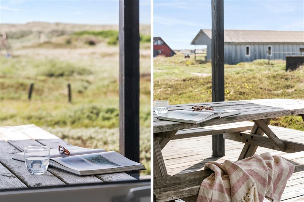 Med kun 150 meter til klitterne og Vesterhavets karakteristiske landskab lige om hjørnet, er det oplagt at bruge mange timer udenfor. Den store naturgrund omkring sommerhuset er ideel til både leg og afslapning – hvad enten du vil lade hunden snuse frit rundt eller blot finde en solrig krog med en god bog. Har du lyst til at sidde ude længe, mens aftenen falder på, er der flere gode siddepladser, hvor du kan mærke havbrisen og høre naturens lyde i baggrunden. Den fredelige beliggenhed betyder, at du får ro til at nyde både morgensolen og sommeraftenerne, og med mulighed for opladning af elbil er der også praktisk tænkt på moderne behov.