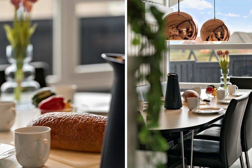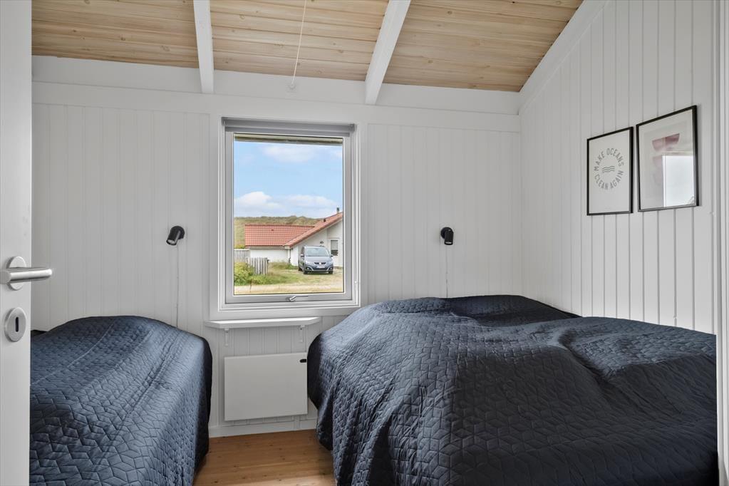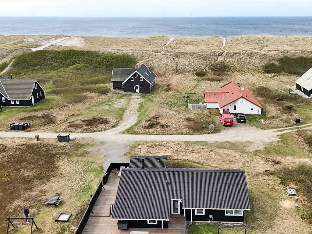Den store terrasse, som delvist er overdækket, gør det muligt at nyde udelivet uanset vejret. Her kan du drikke morgenkaffen i solen, dække op til frokost i læ eller grille på de lange, lyse sommeraftener. I haven finder børnene hurtigt hen til gyngen og sandkassen, mens de voksne måske finder en rolig krog med udsigt til himmel og klitter. Duften af hav minder dig hele tiden om, hvor tæt du er på stranden – og skulle du få lyst til en aftendukkert eller en tur langs vandkanten, er der blot 100 meter at gå.