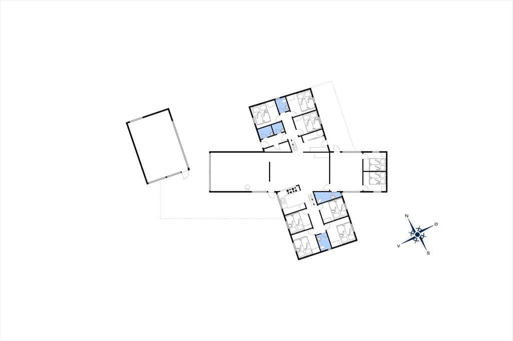 Når døren går op til dette rummelige sommerhus, mærker man straks, hvordan huset er skabt til samvær og afslapning. Det store opholdsrum med stue og køkken i åben forbindelse bliver hurtigt familiens naturlige mødested – her er der plads til lange måltider, hyggelige aftener og nærvær i hverdagsfri omgivelser. Lige ved siden af inviterer aktivitetsrummet til masser af timers ferieunderholdning. Her kan I udfordre hinanden i bordtennis og pool og skabe jeres egne ferieturneringer med grin og god stemning. De to hemse giver ekstra opholdsplads, og når kroppen trænger til ro, kan I sætte jer i saunaen og lade varmen omslutte jer – en dejlig afslutning på en aktiv feriedag.