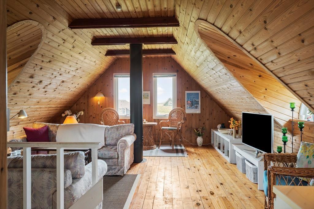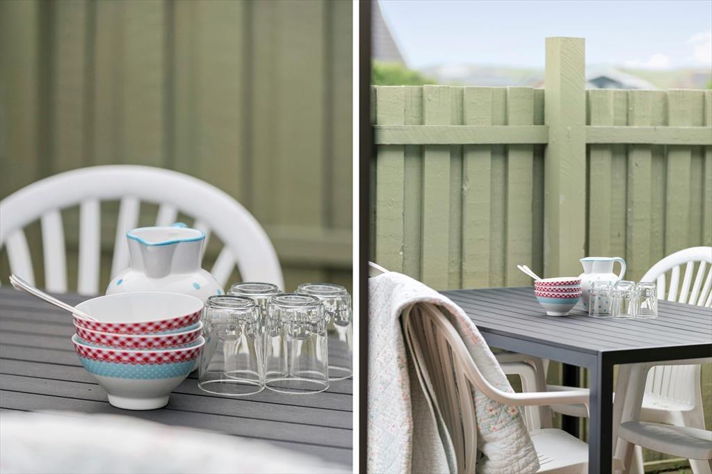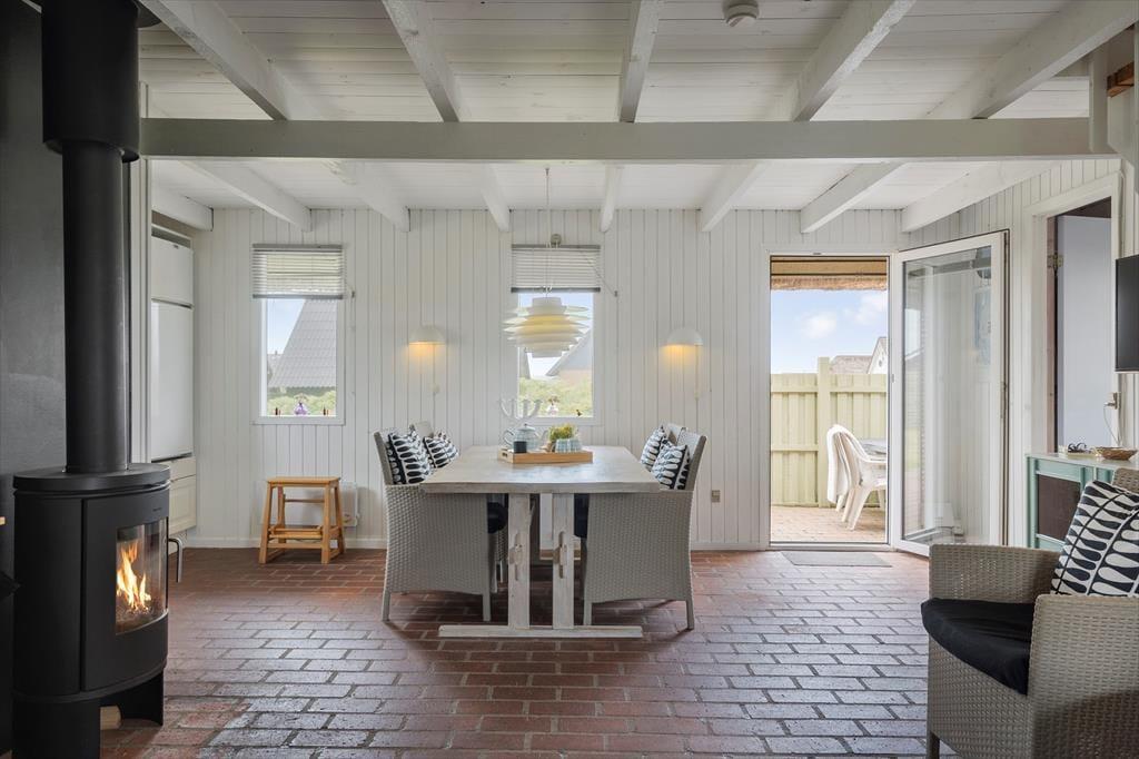 Når vejret er godt, er det oplagt at rykke ferien udenfor. Haven og terrassen omkring huset indbyder til lange, dovne dage under åben himmel. Her er der plads til at nyde morgenkaffen i solen, dække op til aftensmad i det fri eller blot læne sig tilbage med en bog. Og når du får lyst til en strandtur, er der kun 350 meter til de høje klitter og det brusende hav – perfekt til både spontane dukkerter, gåture i sandet og smukke solnedgange.