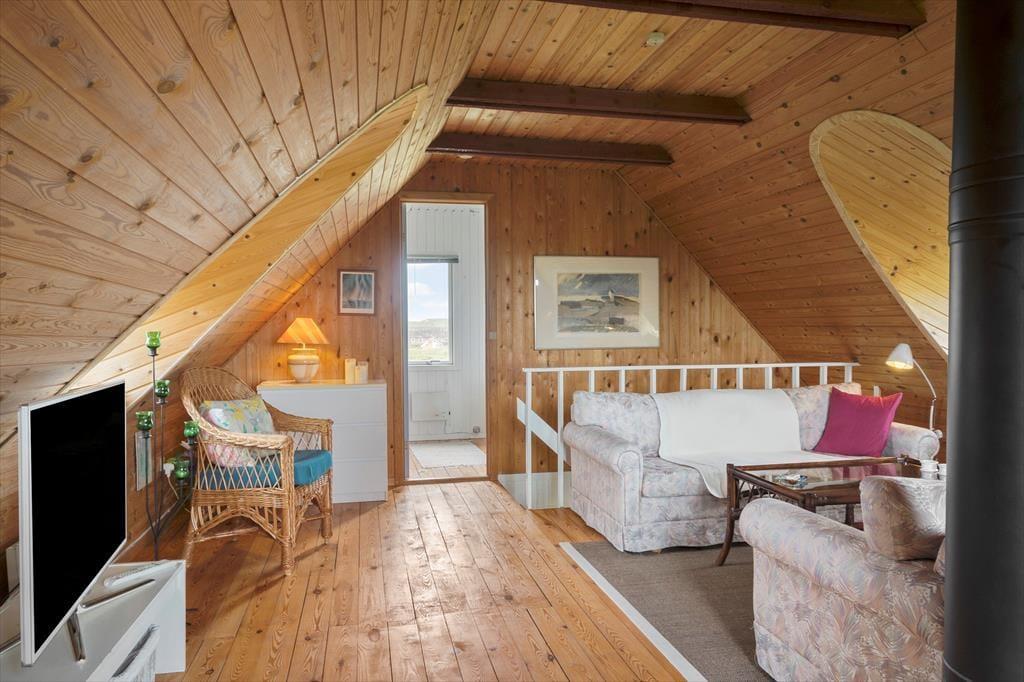 Indenfor mødes du af en lys og indbydende atmosfære, hvor både indretning og materialer er udvalgt med øje for komfort og feriestemning. Sommerhusets to etager giver en fornemmelse af luft og rummelighed – og gør det nemt at finde sit eget fristed, når der er brug for ro. Køkken og stue ligger i åben forbindelse, og her kan du samles med de andre i selskabet over madlavning, spil og hyggelige stunder i sofaen. Store vinduer sørger for et skønt lysindfald, og det er nemt at lade blikket glide ud mod haven og naturen, mens man bare nyder roen og nærværet.