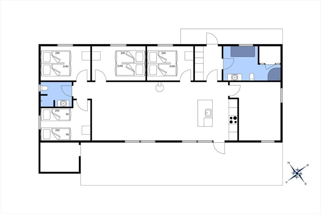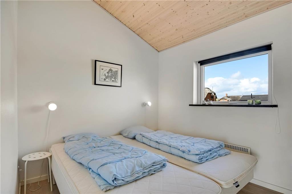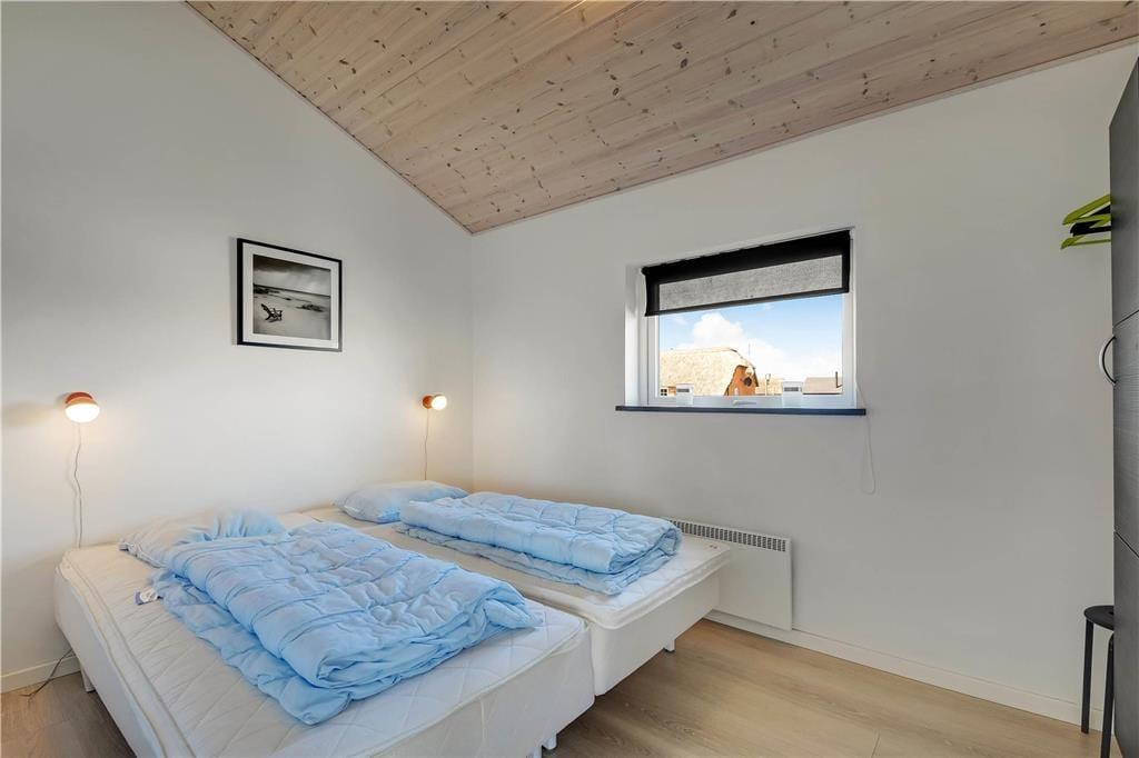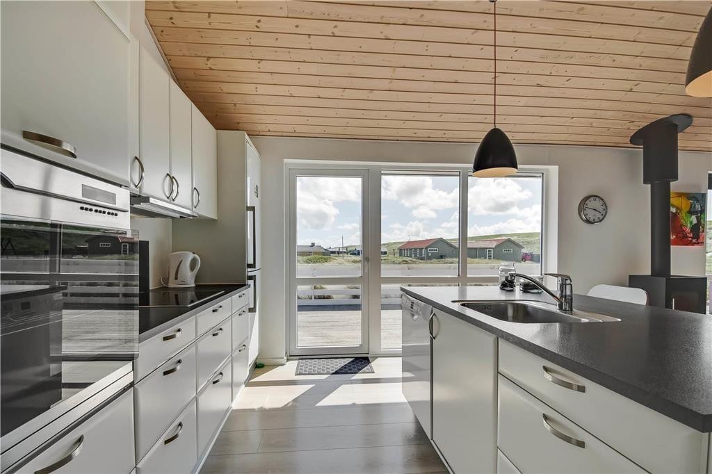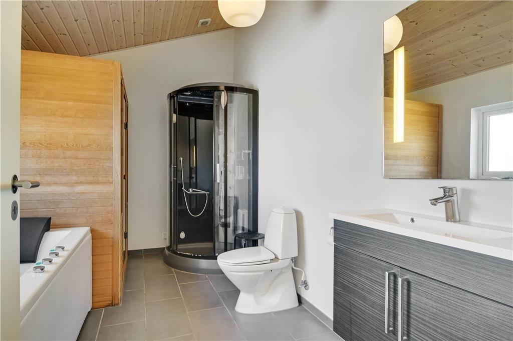 Indenfor i det indbydende sommerhus mødes du af en afslappet atmosfære og lyse, venlige omgivelser, der hurtigt får skuldrene til at sænke sig. Køkken og stue ligger i åben forbindelse, så her er rig mulighed for at samles omkring måltider, brætspil og samtaler – og mens du laver mad, kan du stadig følge med i det, der sker i stuen. Når det bliver tid til leg og konkurrence, kan I gå ind i husets aktivitetsrum, hvor et poolbord står klar til at danne ramme om familiens ferie-turneringer. Efter en dag fyldt med frisk luft og strandliv er det skønt at slutte af i husets wellnessområde – enten i den indendørs spa eller i den infrarøde sauna, der giver varme og velvære på både kølige og solrige dage.