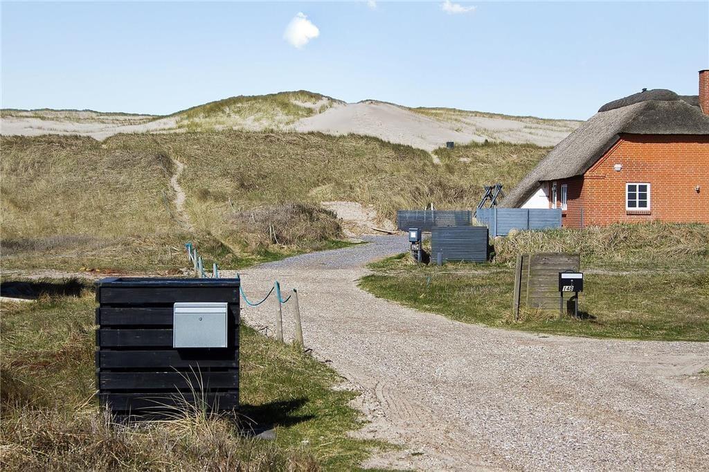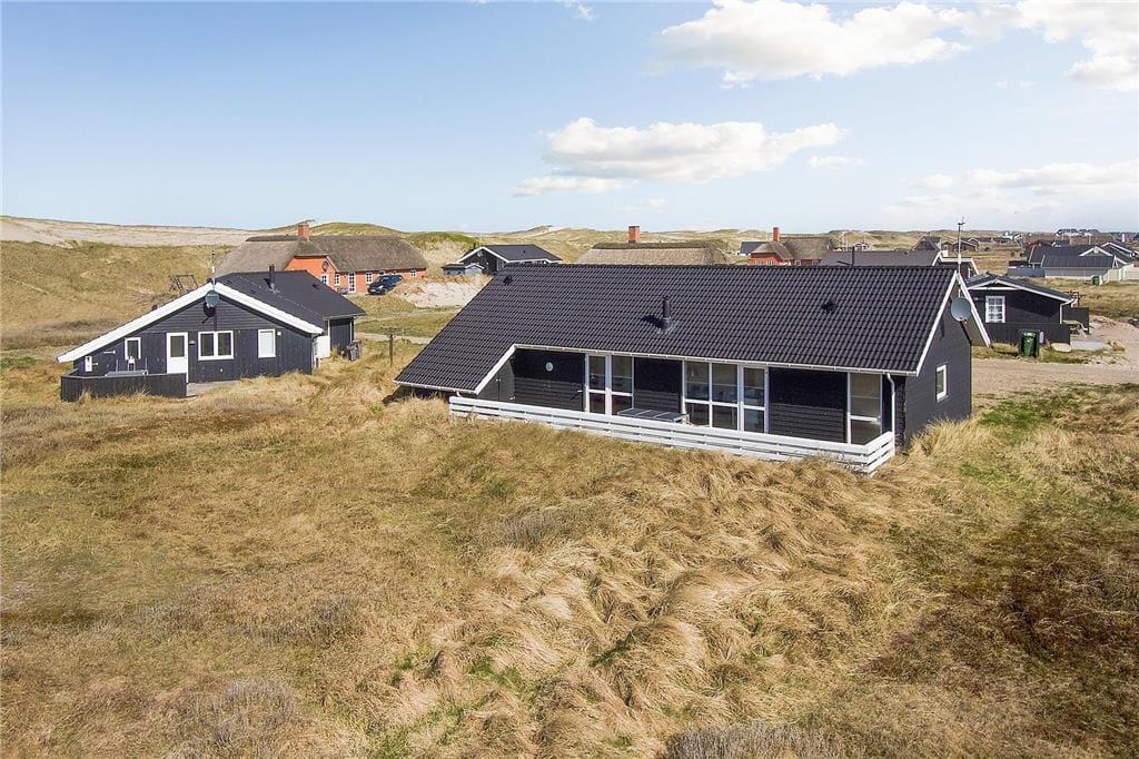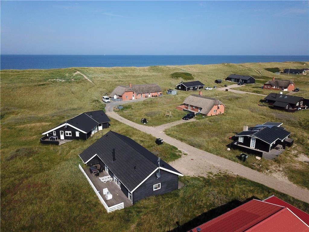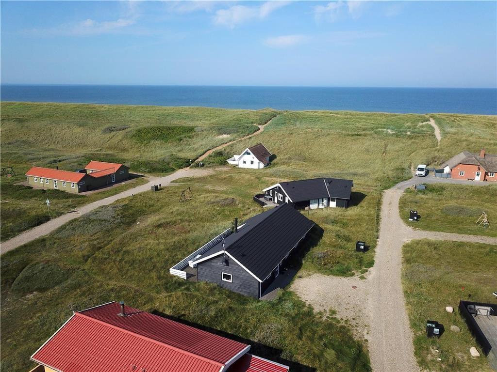 Sommerhuset ligger på en stor naturgrund, hvor I har masser af plads omkring jer. Det kuperede terræn skaber en hyggelig og ugeneret stemning, hvor I kan finde jeres egne små hjørner til afslapning og udeliv. Start dagen med en kop kaffe på terrassen, mens solen stiger op over klitterne – eller læg jer i græsset med en god bog og lyden af havet i baggrunden. For børnene er grunden et oplagt sted at lege og udforske, og hunden har gode muligheder for at strække benene i det fri. Med kun 80 meter til Vesterhavet kan I nemt tage turen frem og tilbage til stranden flere gange om dagen – hvad enten det handler om en hurtig morgendukkert, sandslotbyggeri eller en aftentur i det bløde aftenlys.