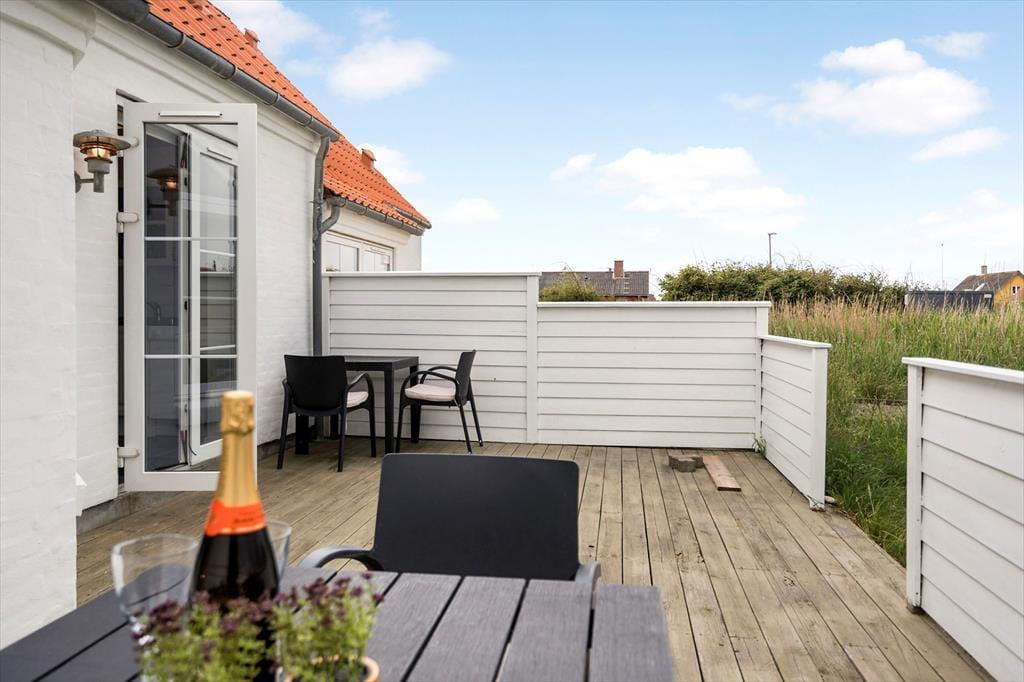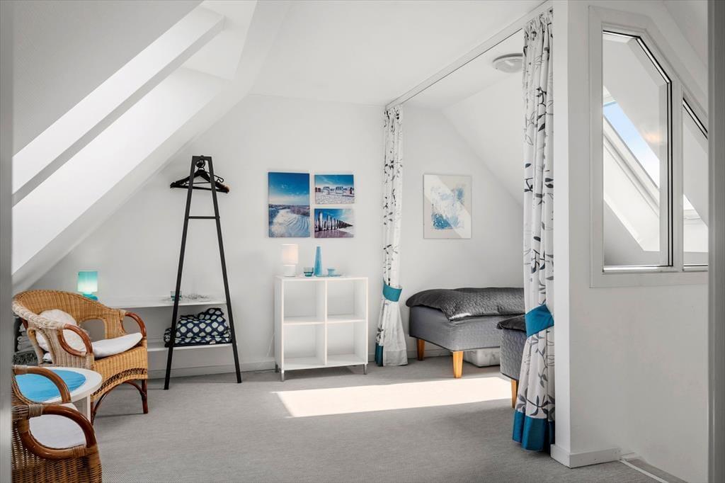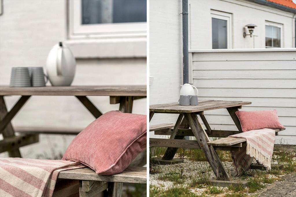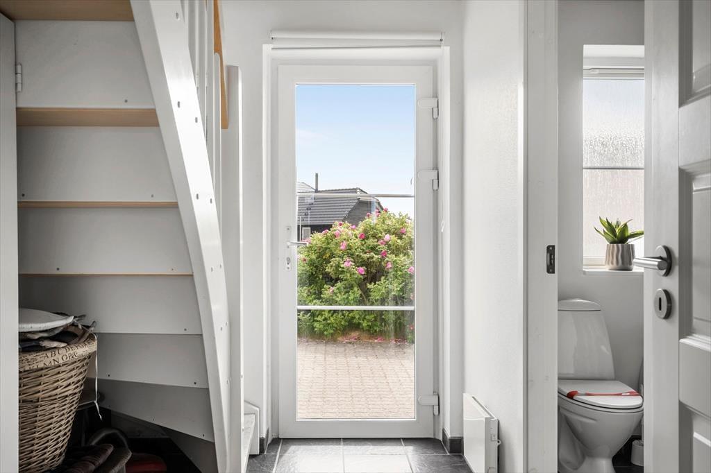 Sommerhusets uderum er mindst lige så indbydende som de indendørs omgivelser. Her finder du nemlig to skønne terrasser, der giver dig mulighed for at følge solen fra morgenkaffen til aftensmaden. Den ene terrasse er perfekt til stille morgener med dugfrisk luft og fuglesang, mens den anden egner sig til grillhygge og afslapning under åben himmel. Haven og omgivelserne er rolige og grønne, og både børn og hunde kan lege trygt, mens de voksne nyder det afslappede tempo og de fredelige rammer. Her er det let at koble af – med vinden i håret, solen i ansigtet og duften af hav i næsen.