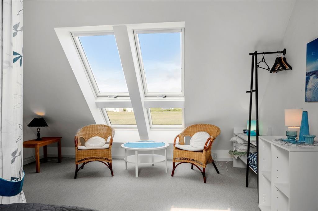 Med kun 250 meter til Vesterhavet ligger stranden lige for dine fødder. En kort gåtur ned ad stien fører dig til det brede sand og de evigt foranderlige bølger, hvor du kan bade, gå lange ture eller bare stå stille og nyde solnedgangen. Området omkring Vrist byder på masser af oplevelser i naturen – og vil du lidt længere væk, ligger Bovbjerg Fyr, Ferring Sø og Jens Søndergaards Museum inden for kort køreafstand. Også Lemvig og Thyborøn er oplagte udflugtsmål, hvor du kan opleve både havnemiljø, lokale delikatesser og vestjysk kultur. Sommerhuset på Skalvej 4B er en skøn base, uanset om ferien skal bruges på afslapning, eventyr – eller lidt af det hele.
