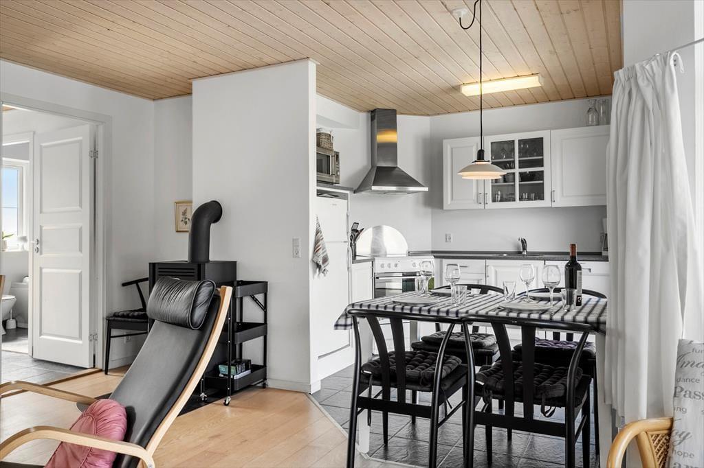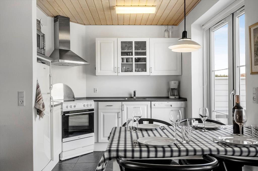 Allerede når du træder indenfor i sommerhuset, mærker du, at her er der kræset for både komfort og stemning. De lyse rum og den moderne indretning skaber en rar og afslappet atmosfære, og den åbne planløsning gør det let at være sammen – uanset om det er til fælles madlavning i det veludstyrede køkken, lange snakke ved spisebordet eller afslapning i sofaen. Når dagen går på hæld, kan du læne dig tilbage og mærke varmen fra saunaen eller lade boblerne i spaen løsne op for kroppen. Det er med andre ord et hus, der både indbyder til samvær og små, rolige pauser – og hvor hver detalje bidrager til følelsen af ægte ferie.