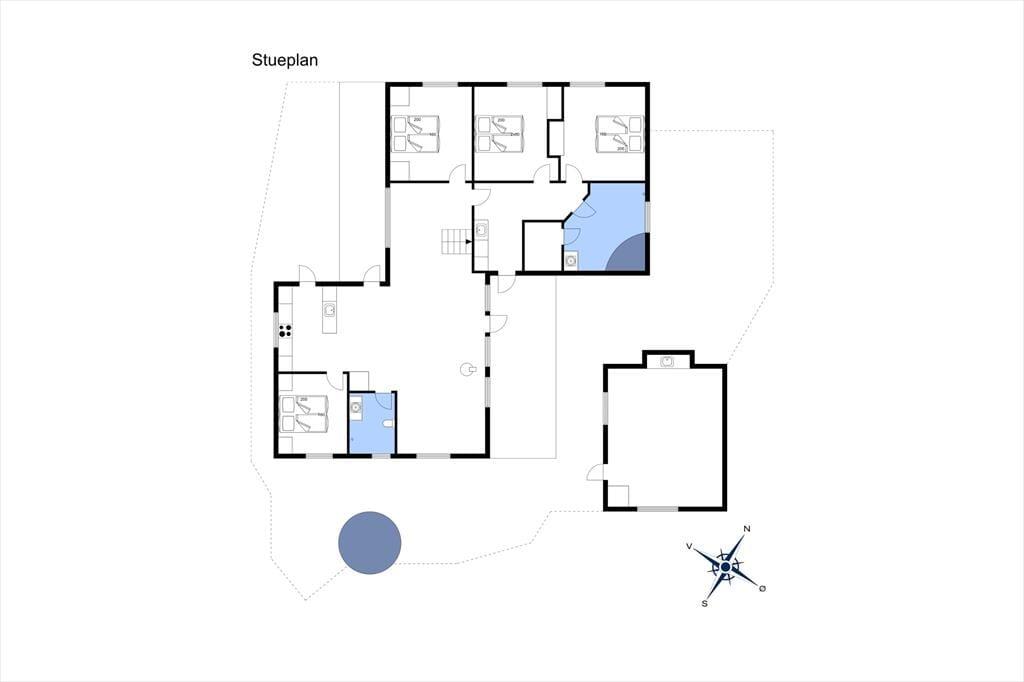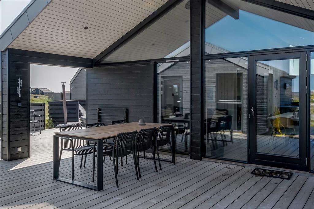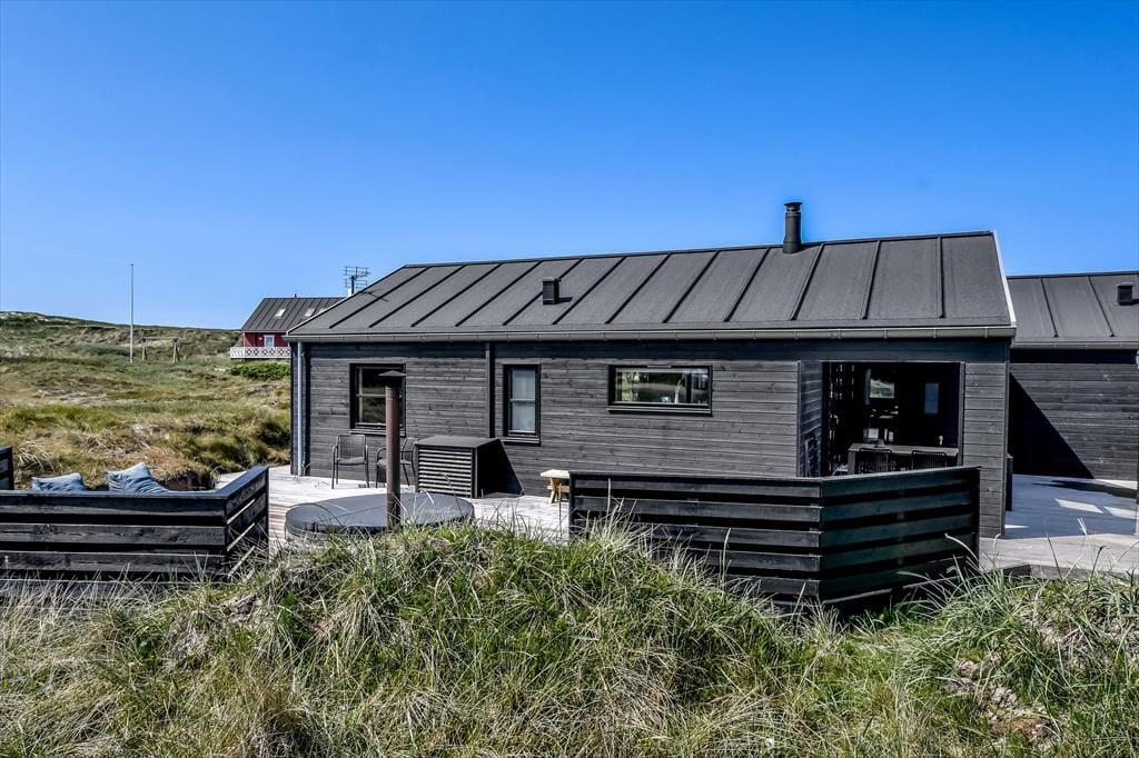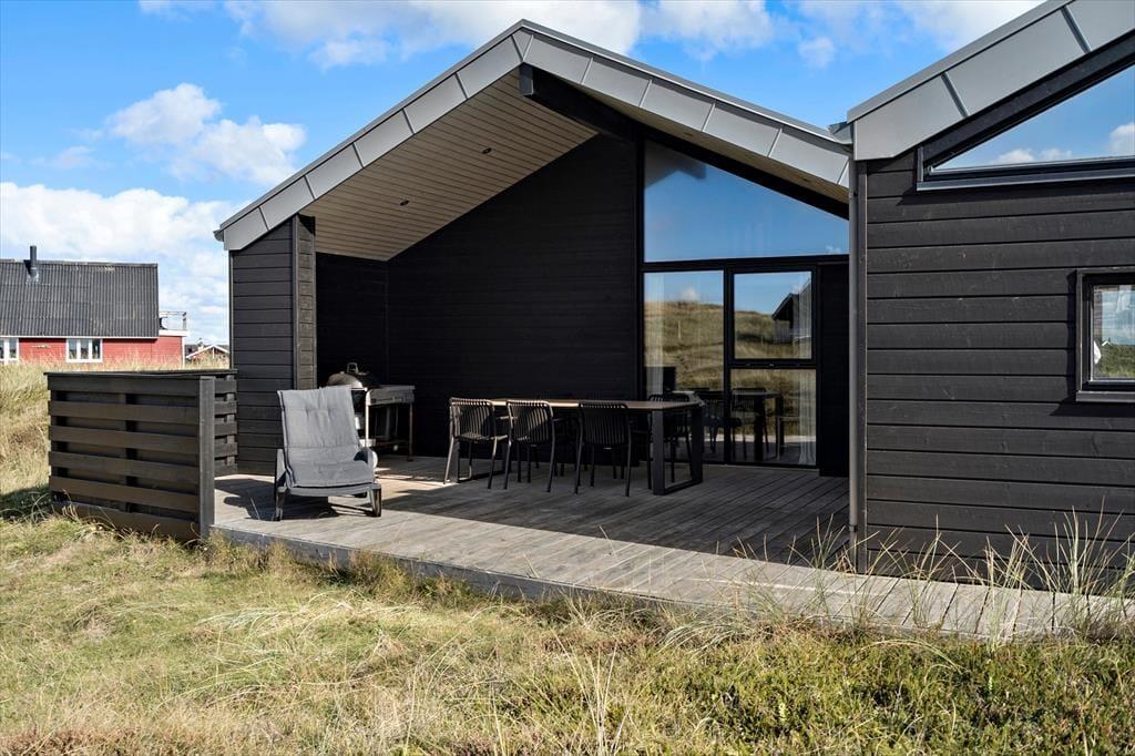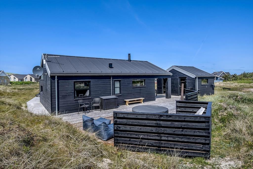 Det bliver ikke svært at finde feriestemningen på den store og delvist overdækkede terrasse, hvor I kan slappe af i læ for vinden eller nyde solen i loungemøblerne. I hjørnet af terrassen står det runde vildmarksbad klar til at forkæle jer – særligt skønt, når mørket falder på og stjernerne lyser nattehimlen op. Der er god plads omkring huset, og haven er som skabt til leg og ophold under åben himmel – her kan børnene løbe frit, og der er altid mulighed for en frisk brise fra havet. Den korte afstand til stranden gør det nemt at tage spontane ture i løbet af dagen – måske starter I dagen med en dukkert og slutter med en gåtur langs vandet i solnedgangens skær.