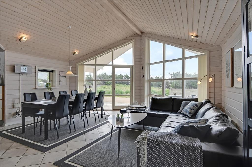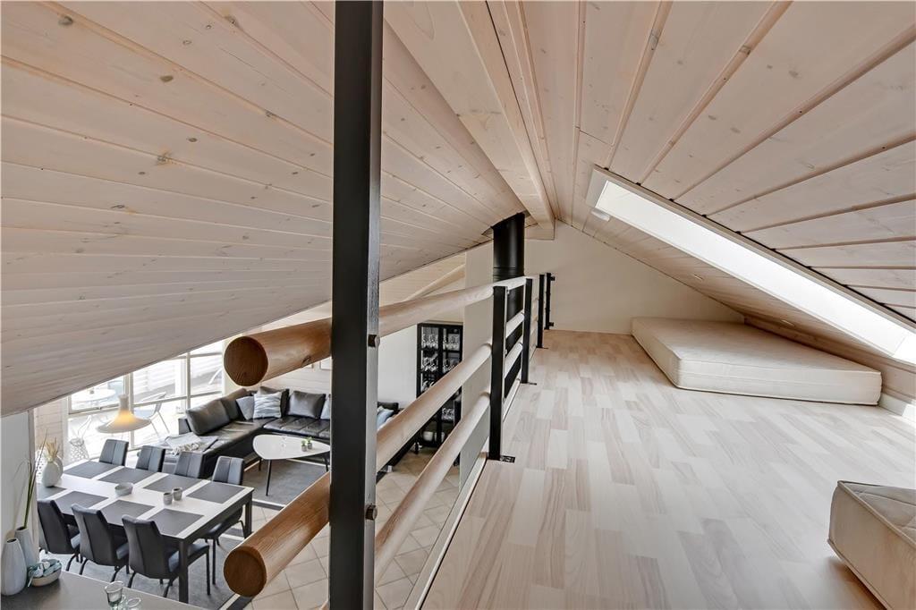 Sommerhuset på Gloryvej 8 er lyst og hyggeligt indrettet, så du straks føler dig hjemme. Stuen, køkkenet og spiseområdet ligger i åben forbindelse, og gennem de store vinduespartier strømmer lyset ind og skaber en dejlig atmosfære. Her kan I samles omkring bordet til måltider og brætspil eller slappe af i sofahjørnet med udsigt til haven. Huset rummer desuden en hems, som børnene sikkert vil elske som deres egen lille hule. Når det er tid til ekstra selvforkælelse, kan du tage en tur i husets indendørs spa og efterfølgende nyde varmen i saunaen – perfekte steder at slappe helt af efter en dag fuld af oplevelser.