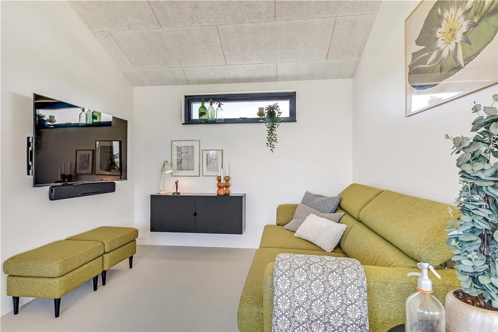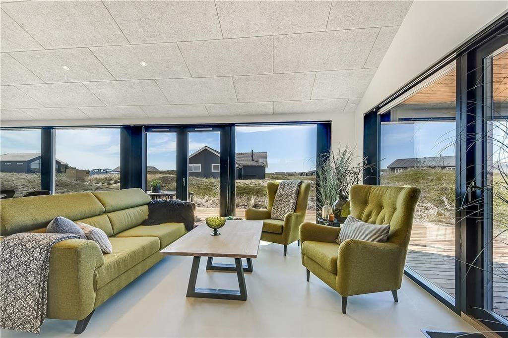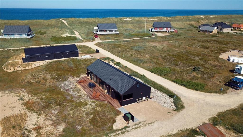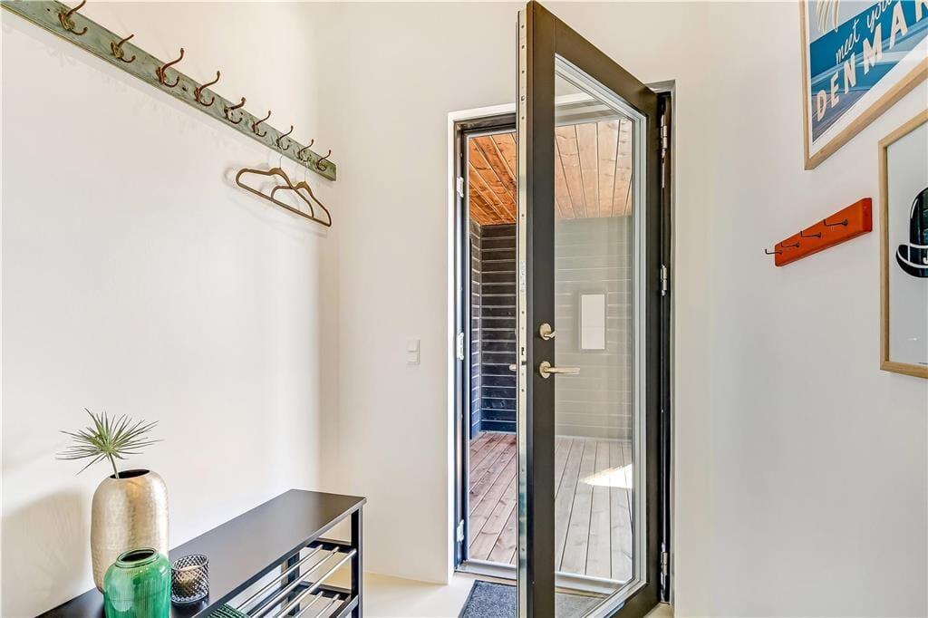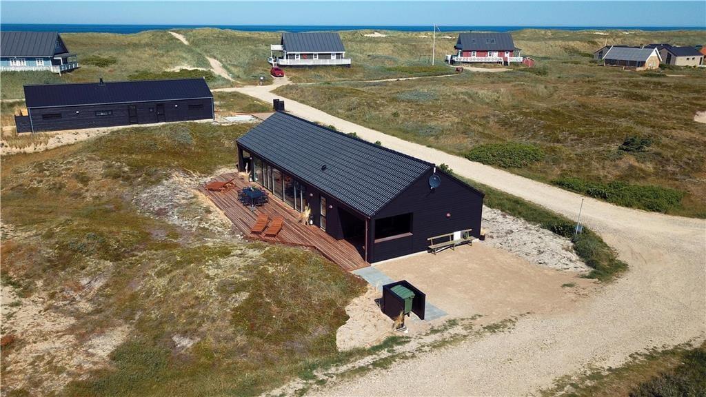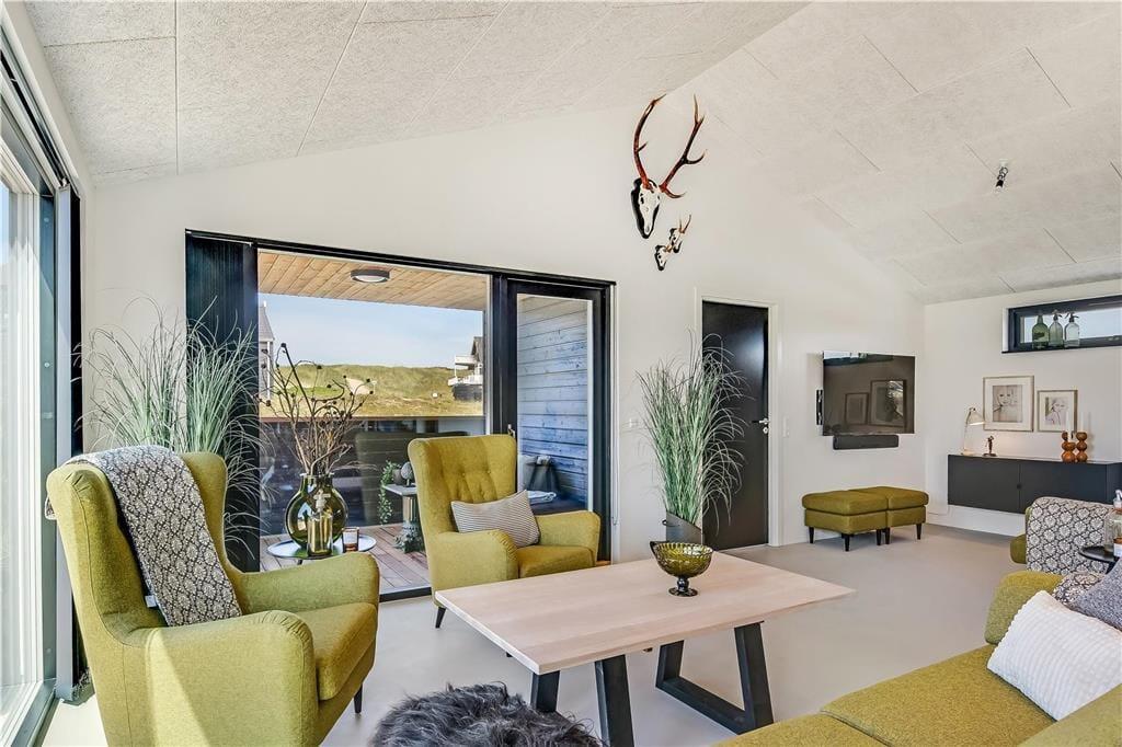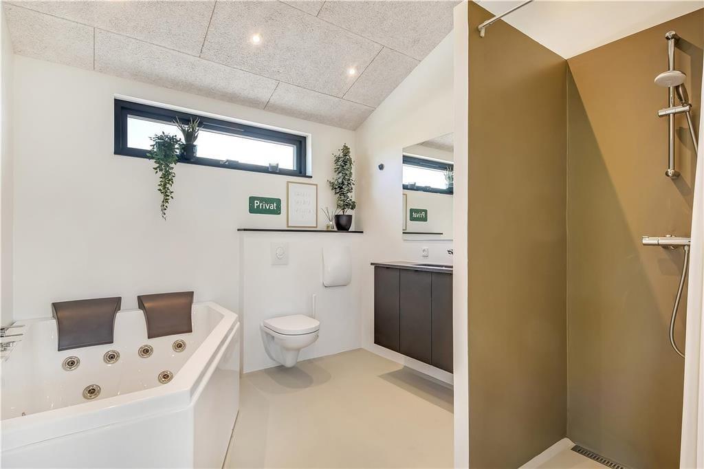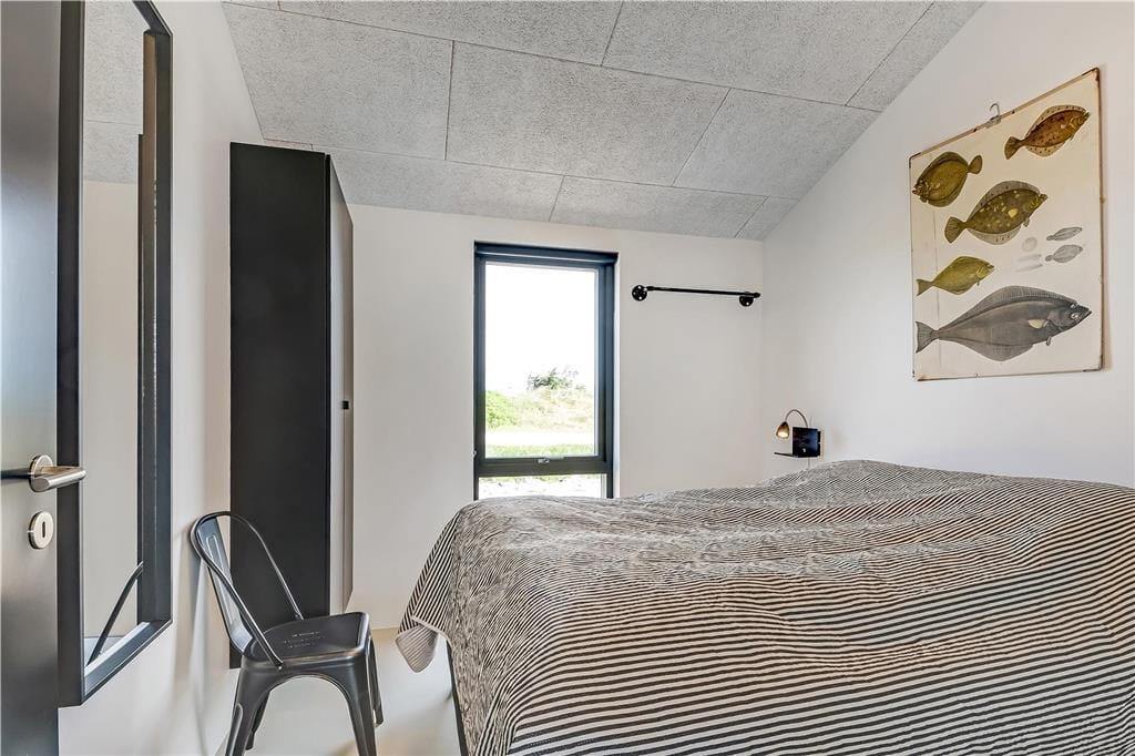 Indendørs bliver du mødt af en behagelig stemning og en stilren indretning, der gør det nemt at finde sig til rette. Store vinduer lukker masser af lys ind og skaber en let og luftig atmosfære. Køkken og stue ligger i åben forbindelse, så man nemt kan være sammen – hvad enten der skal laves mad, hygges med en kop kaffe eller slappes af i sofaen. I det lækre badeværelse kan du tage en pause fra hverdagen og synke ned i det indendørs spabad, der er perfekt til både velvære og afslapning efter en lang strandtur. Huset er indrettet med mange fine detaljer, der giver en fornemmelse af, at her er tænkt over tingene – og alt sammen i en stil, der passer til ferie ved Vesterhavet.