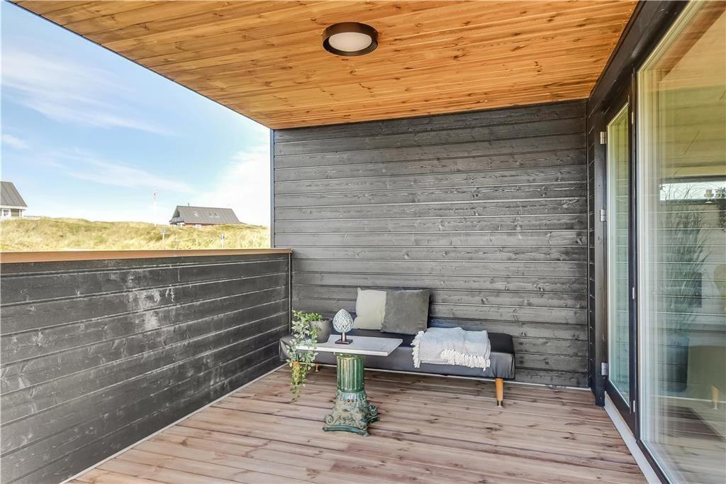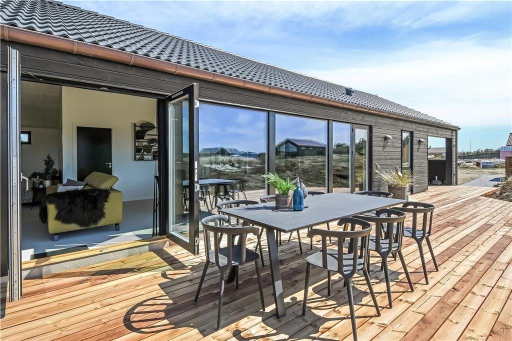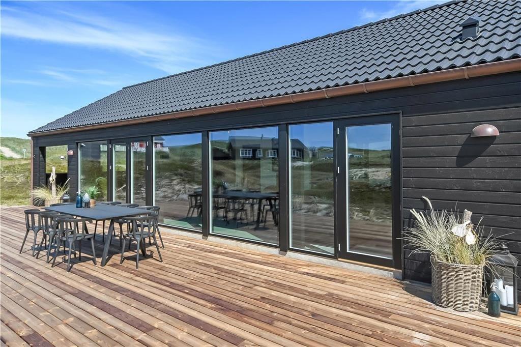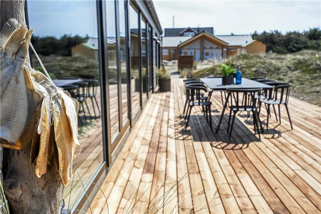 De to overdækkede terrasser udgør et vigtigt omdrejningspunkt for udelivet i dette sommerhus. Her er plads til at nyde morgenkaffen i ly for vinden, holde hyggelige grillmiddage i det fri eller bare trække sig tilbage med en bog i hængekøjen. Terrasserne giver dig mulighed for at være udenfor – uanset om solen skinner fra en skyfri himmel, eller der trækker en let sommerregn forbi. Den lukkede grund skaber trygge rammer for både børn og hunde, og den korte afstand til stranden gør det nemt at tage spontane ture til vandet – for hvem kan sige nej til at dyppe tæerne i Vesterhavet, når det bare er et par minutters gang væk?