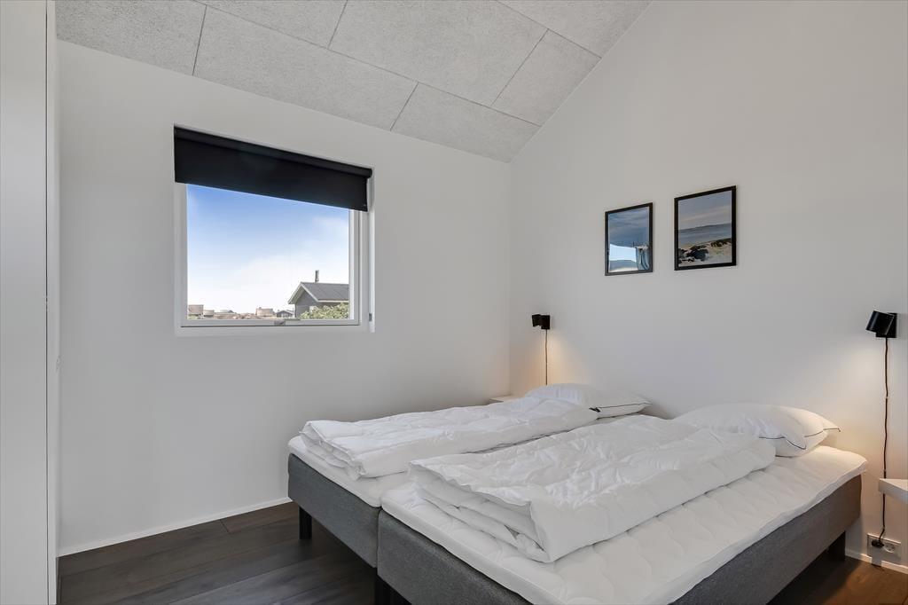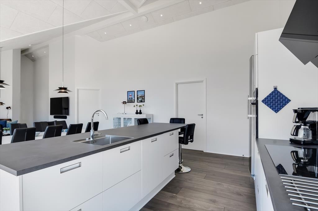 Indenfor mødes du af et lyst og indbydende sommerhus, hvor loft til kip og store vinduespartier giver en skøn rummelighed og masser af dagslys. Sommerhuset er indrettet med tanke på både samvær og adspredelse, og det mærker du især i det hyggelige opholdsrum, hvor køkken, spiseplads og stue smelter sammen til ét hjerterum. Her kan du lave mad, læse en bog i sofaen eller spille brætspil, mens ilden knitrer i brændeovnen – alt sammen i samme afslappede stemning. Men der er også mulighed for mere liv og leg, for huset byder på et aktivitetsrum, hvor der kan dystes i både pool og dart – og her er det svært ikke at blive revet med af feriestemningen, mens latteren runger mellem væggene. Med plads til op til 10 personer og en gennemtænkt planløsning er her god plads til både store og små, og du vil hurtigt opleve, hvordan huset indbyder til fælles ferieglæde.