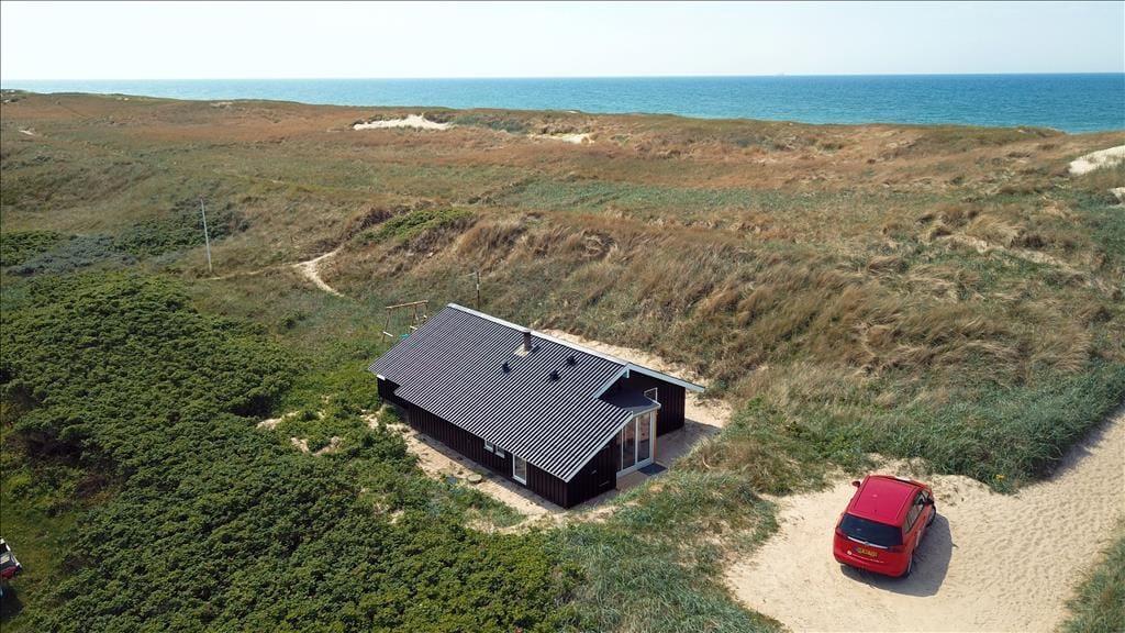 Drømmer du om et sommerhus helt tæt på Vesterhavet – hvor du kan høre bølgerne og mærke havbrisen fra første sekund? Så er Horizonvej 19 i Vrist det helt rette sted. Her bor du i første række til klitter og strand, og indretningen byder på både spa, sauna og hyggelig atmosfære. Oveni får du en fin terrasse og en have med gyngestativ – og naturligvis er din hund også velkommen på ferie.