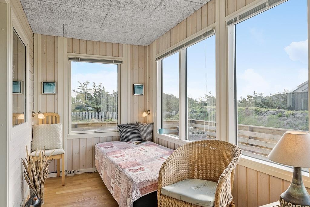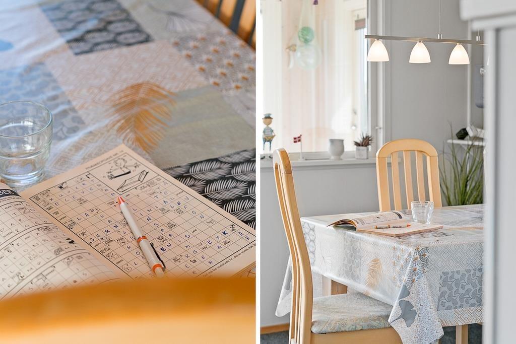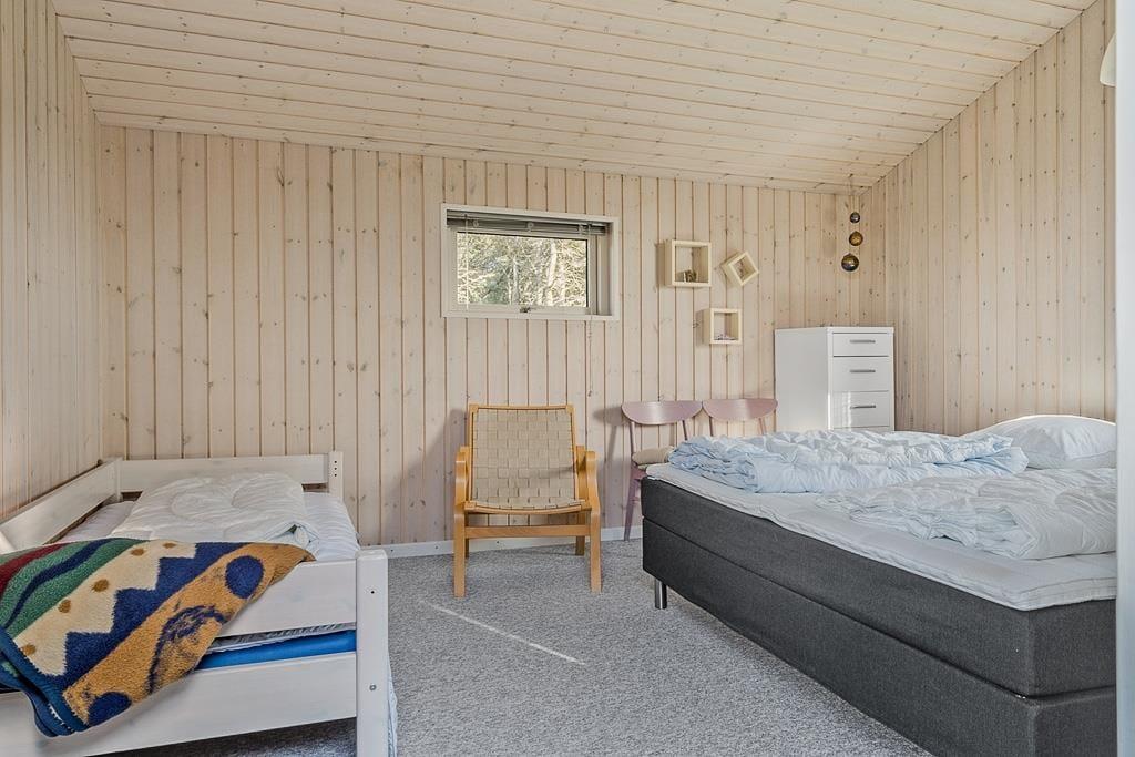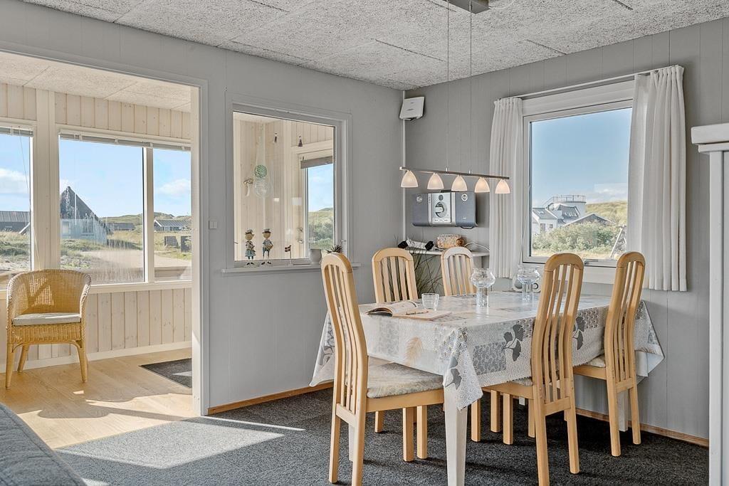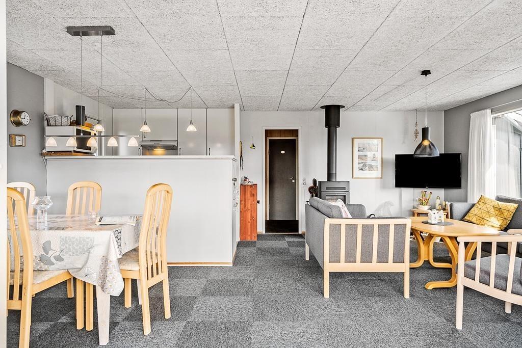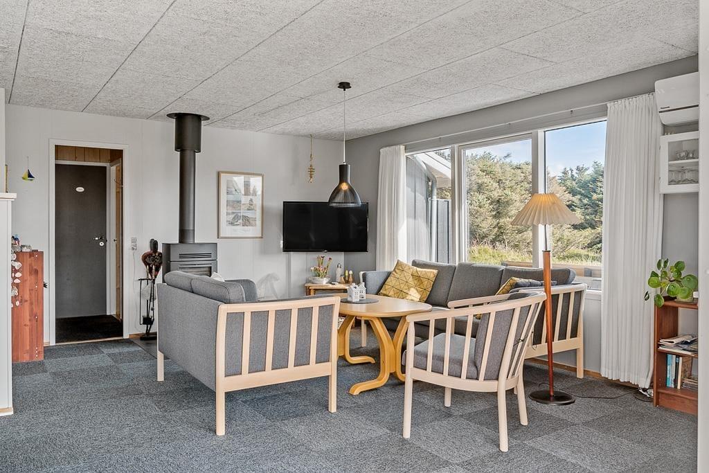 Sommerhuset er både hyggeligt og funktionelt indrettet og har en indbydende atmosfære, hvor feriestemningen hurtigt melder sig. Indenfor mødes du af lyse og venlige rum, hvor køkken og stue ligger i åben forbindelse og indbyder til samvær. Her kan du nyde måltider med familien, slappe af med et spil kort, eller lade blikket glide ud gennem vinduerne og følge lyset over klitterne. Ud over de to soveværelser i hovedhuset byder sommerhuset også på et praktisk anneks, som er ideelt til dem, der ønsker lidt ekstra privatliv – måske teenagere eller bedsteforældre. Og når solen skinner, føles udestuen som en naturlig forlængelse af opholdsrummet – perfekt til en stille stund med en god bog eller en kop te.