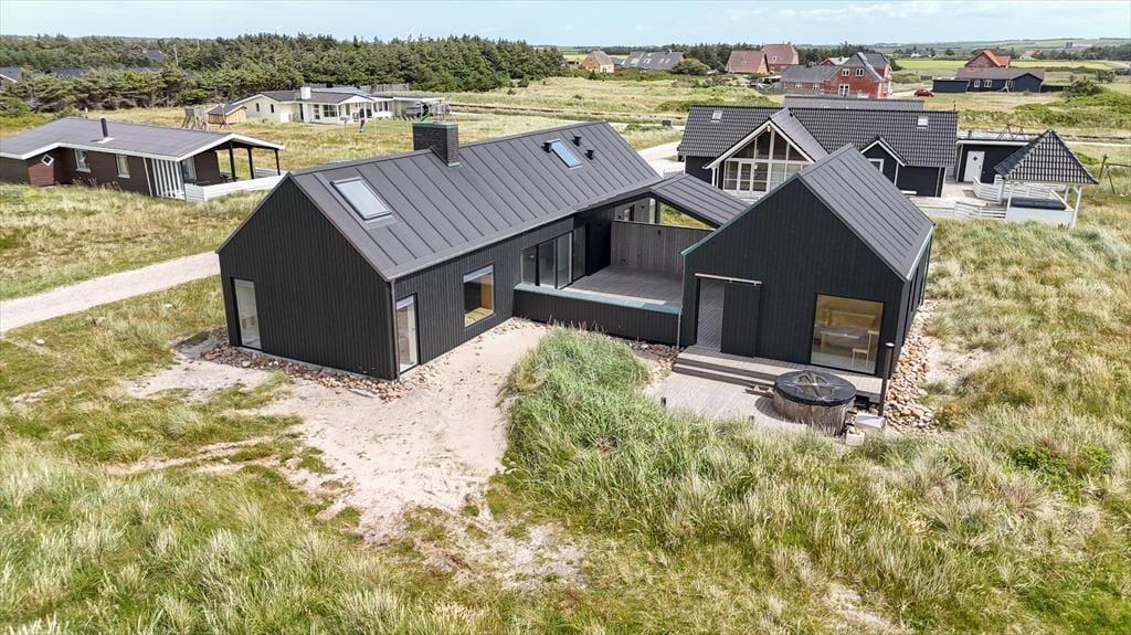 Når du træder ind i dette nye sommerhus, bliver du mødt af en lys og indbydende atmosfære. Stuen og køkkenet ligger i åben forbindelse, hvilket skaber et rummeligt og hyggeligt opholdsområde for hele familien. Store vinduer lader lyset strømme ind og giver udsigt til den smukke klitrække udenfor. Huset har 4 dejlige soveværelser, som alle er smagfuldt indrettet med lyse farver, der skaber en afslappende stemning. Badeværelserne er moderne og veludstyret.
