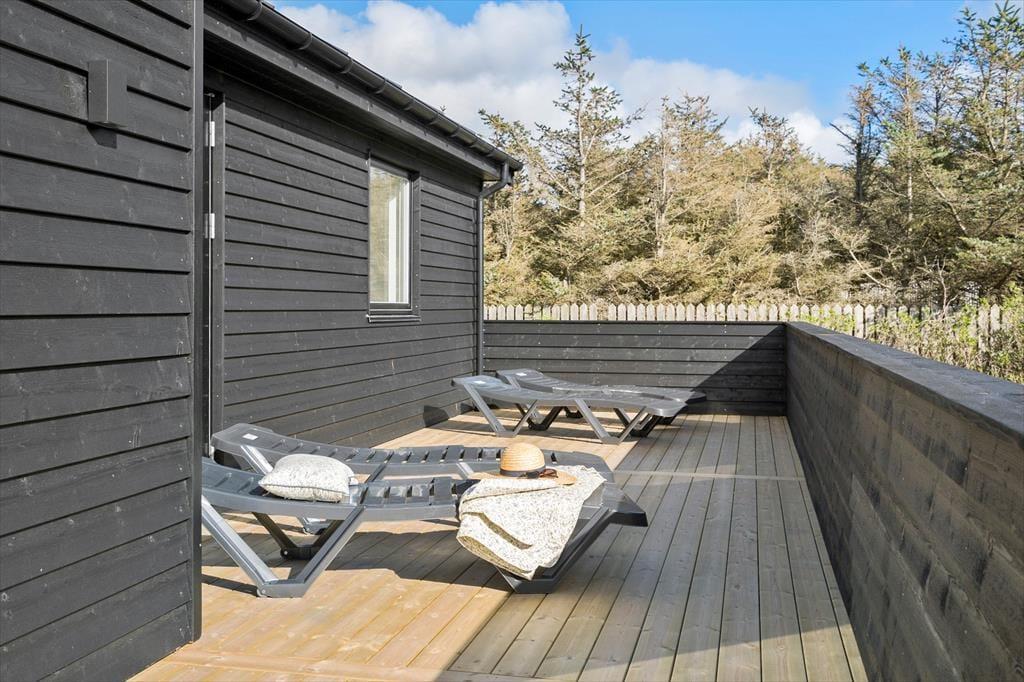 Udendørs er her mindst lige så skønt som indenfor. Den store, flotte træterrasse rummer flere hyggelige kroge og er delvist overdækket, så du kan nyde udelivet uanset vejret. På en solrig dag kan du slappe af med en kold drik i liggestolen, mens børnene hopper løs på trampolinen i haven. Og når aftenen falder på, er det oplagt at tænde op i grillen og nyde et godt måltid under åben himmel. Højdepunktet for mange vil dog være udespaen og den rustikke tøndesauna, der begge inviterer til ren afslapning og forkælelse i det fri. Her kan du sidde i det varme vand og nyde stjernehimlen – eller kombinere en saunatur med en afkølende bruser og frisk havluft. Den indhegnede grund og det rolige sommerhusområde gør det desuden trygt og behageligt at have både børn og hund med på ferie.